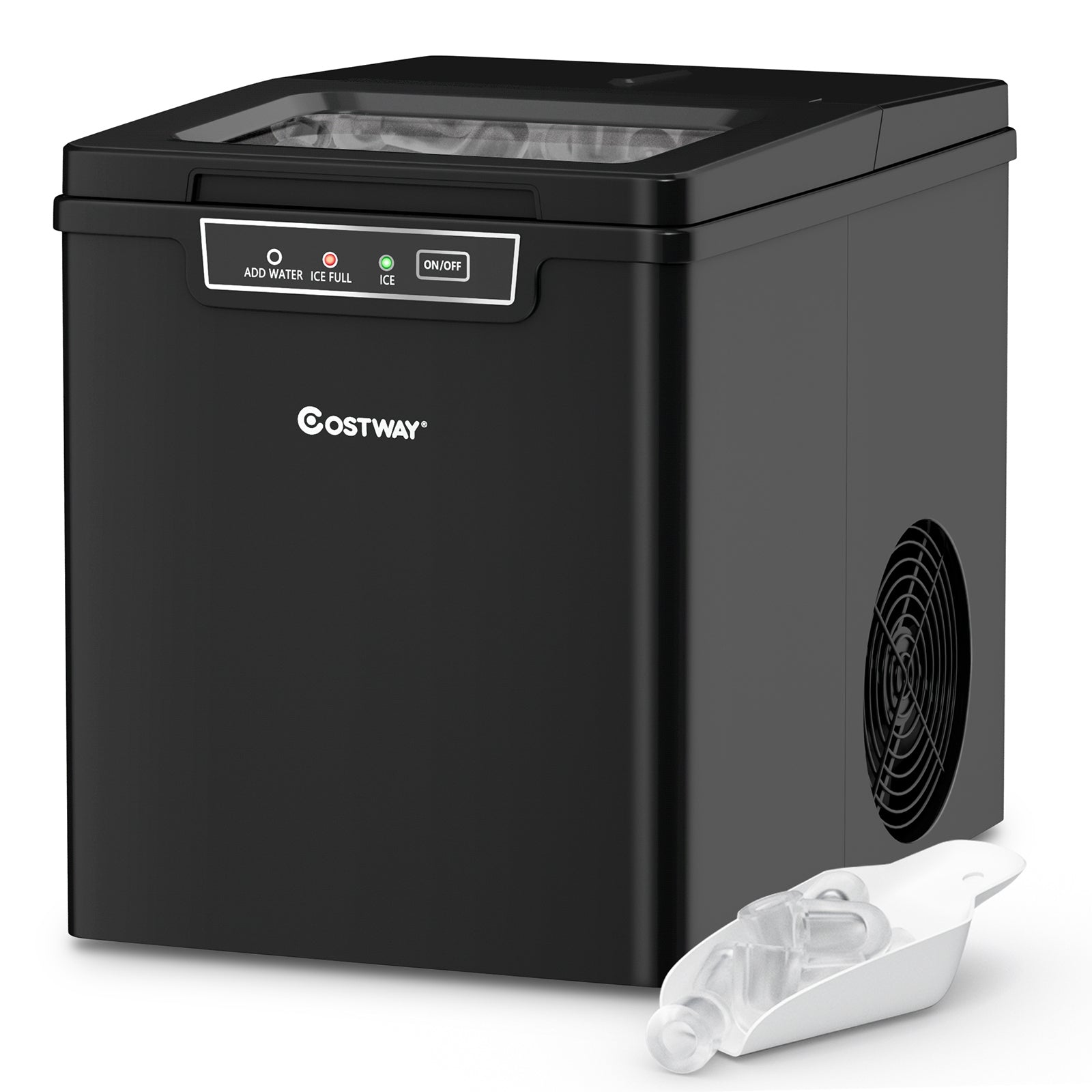 Máquina de Gelo com Sistema de Alarme Pá e Cesto Removível para Casa Escritório Bar Preto 35 x 25 x 29,5 cm