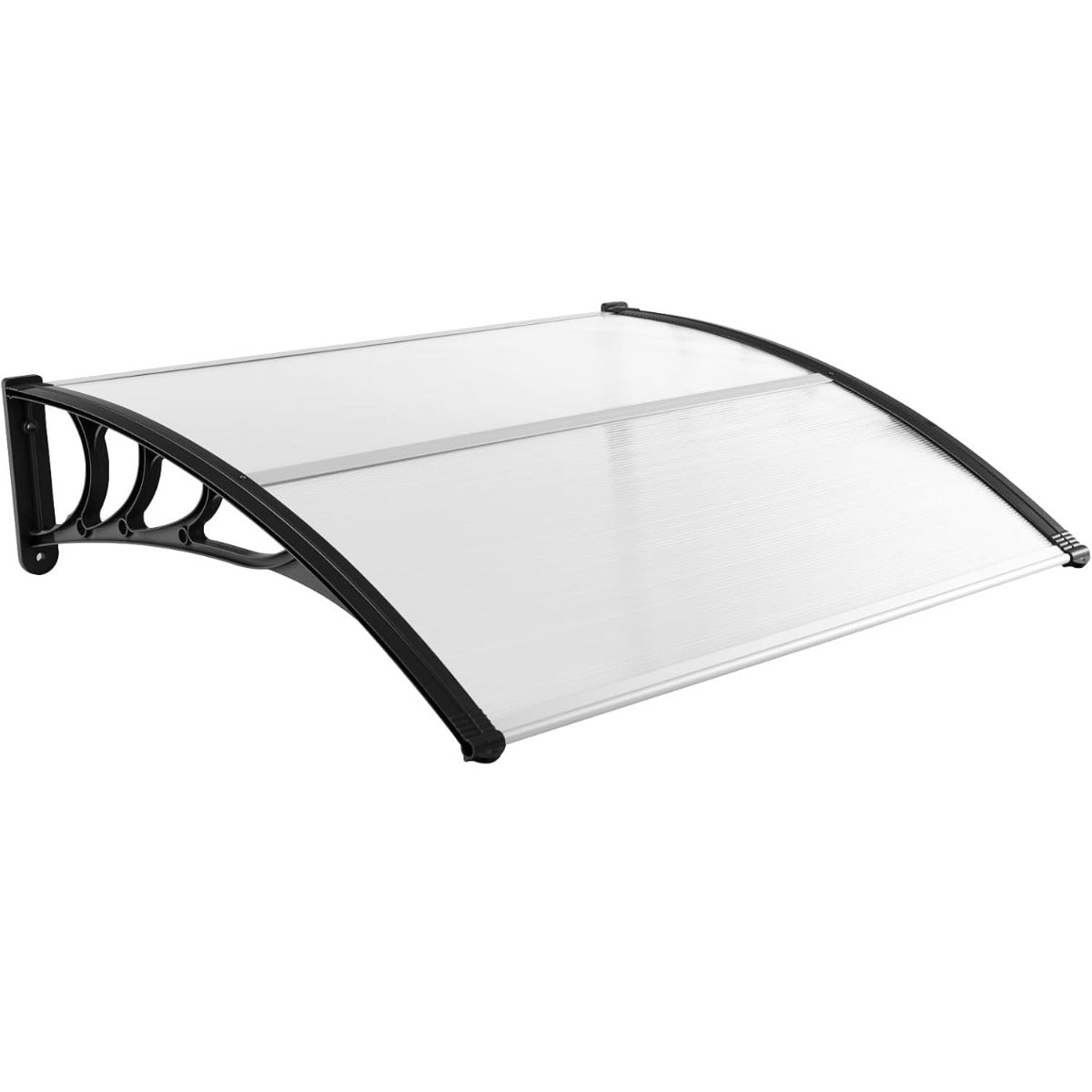 Marquise para Porta de Entrada Tejadilho Exterior com Proteção Solar Contra a Chuva Toldo Transparente de Alumínio 122x99x28cm Preto