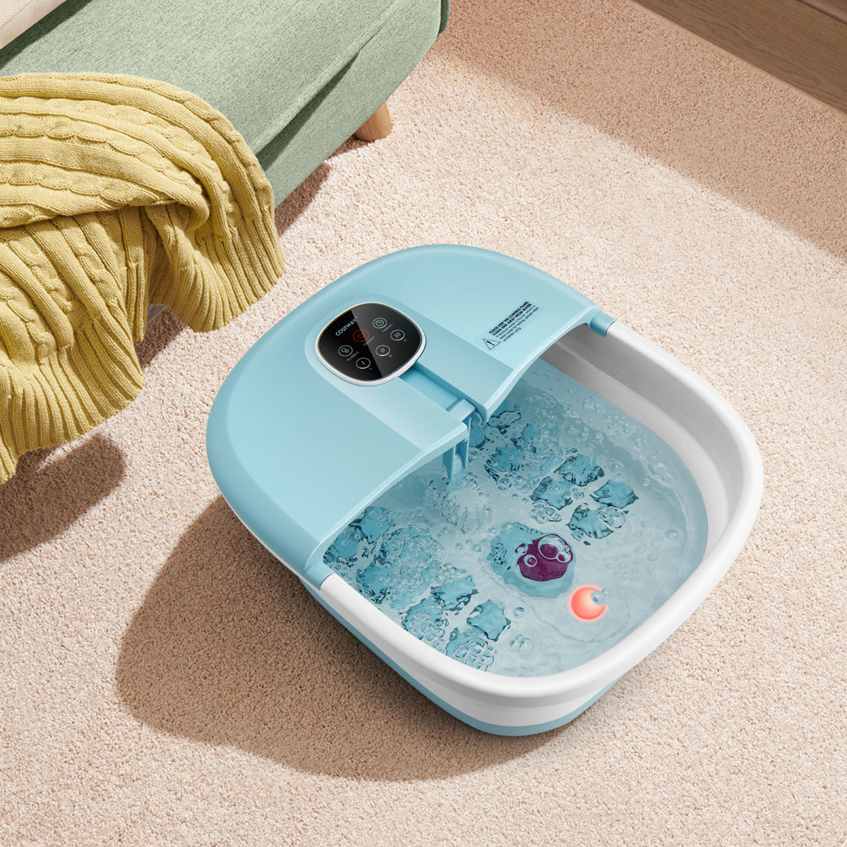 Descubra o massajador dobrável multifuncional para pés! Este massajador para pés inclui aquecimento, massagem shiatsu, com rolos e de bolhas, oferecendo 2 modos de temporização ideais para aliviar o cansaço e a dor nos pés. Todas estas funções estão disponíveis no comando magnético, onde pode regular as 3 temperaturas de acordo com as suas necessidades. Equipado com um aquecedor PTC eficaz, este massajador é ideal para relaxar. Além disso, inclui uma caixa onde pode adicionar ervas medicinais, leite e uma pedra-pomes para personalizar o seu pedilúvio. Fabricado em ABS e PP resistentes ao calor e duráveis, este massajador é compacto e dobrável, tornando-o fácil de armazenar debaixo do sofá ou da cama. Um presente maravilhoso para os idosos.