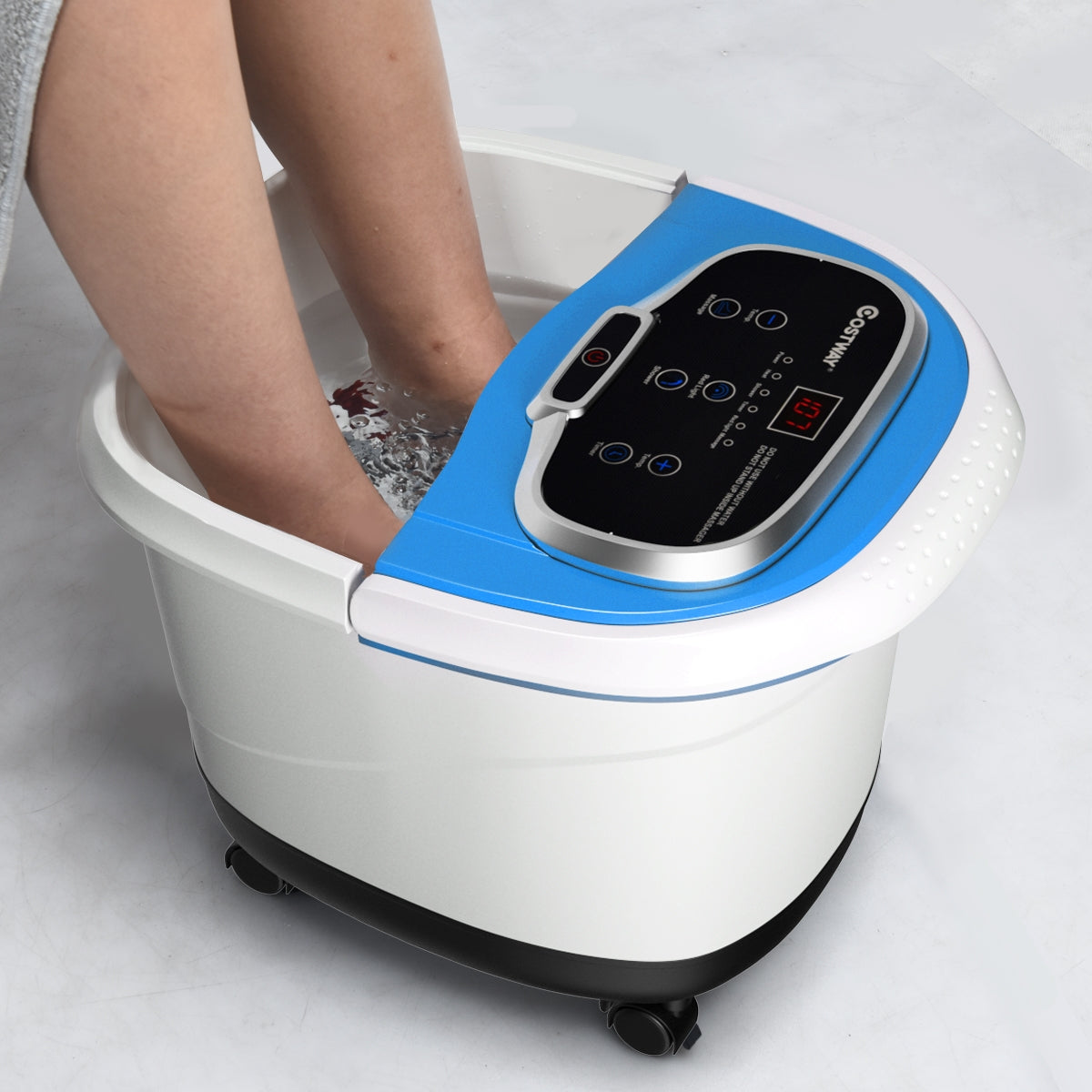 O nosso massajador para pés é ideal para toda a família e melhora a qualidade de vida. Com 6 rolos e função de duche, promove a circulação sanguínea, alivia a dor e o cansaço e relaxa os meridianos. A luz vermelha e o compartimento aumentam o efeito terapêutico e reduzem o inchaço, a pulsação e as vermelhidões. A temperatura e o temporizador podem ser ajustados conforme preferir. A pega e as 4 rodas universais ajudam na sua deslocação. Relaxe com este massajador!