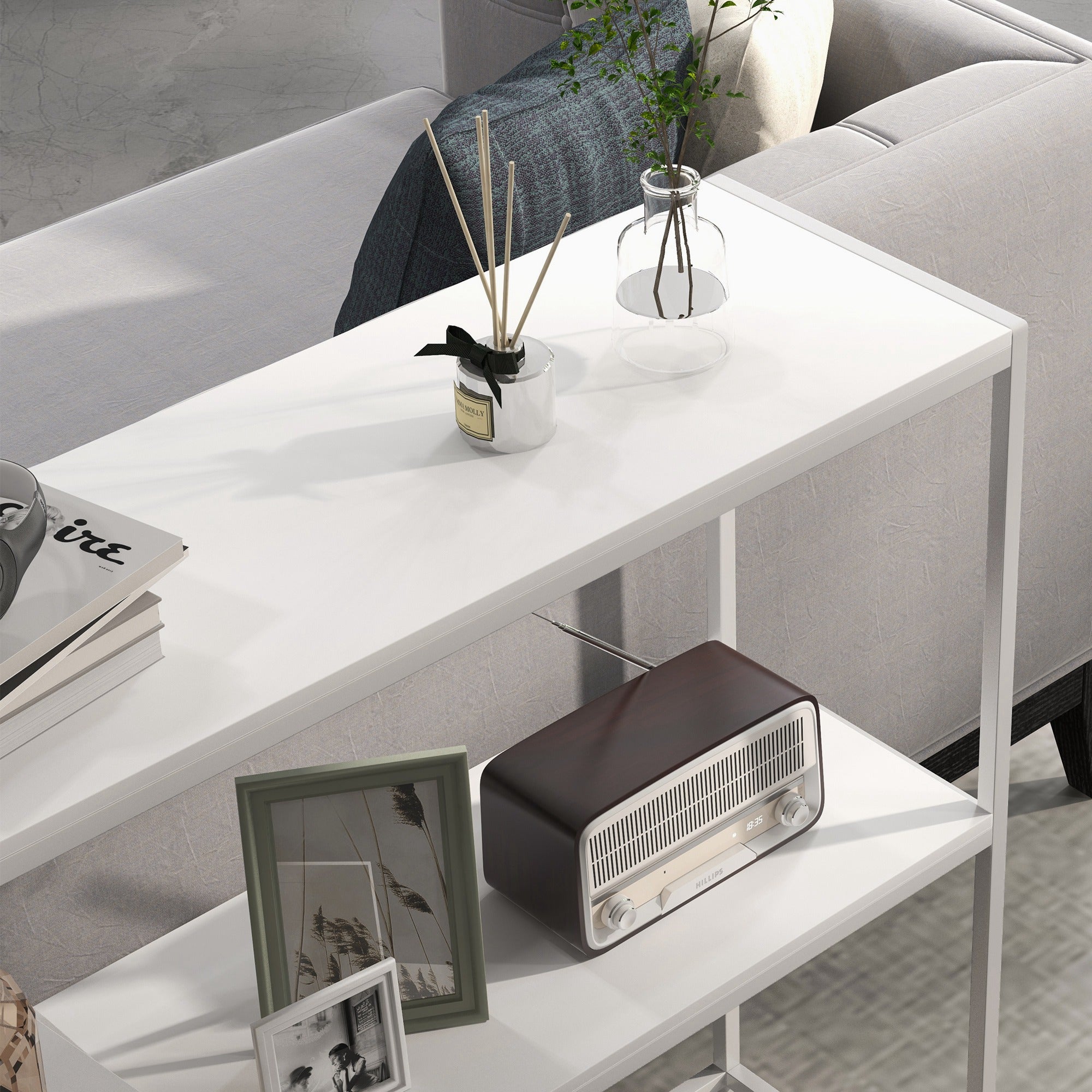 Mesa Consola de Entrada Branca 100x30x87 cm - Estante Aberto e Estrutura de Aço