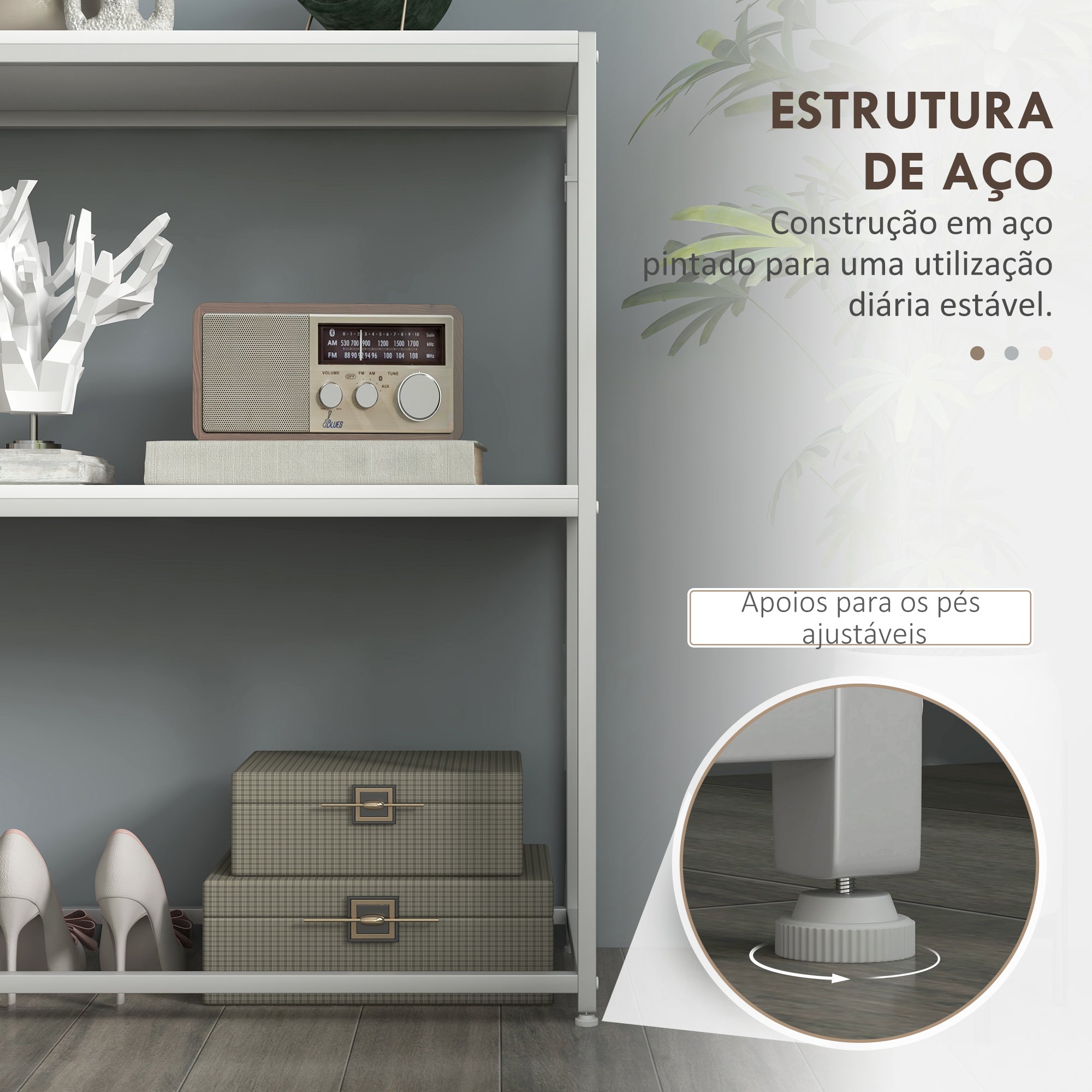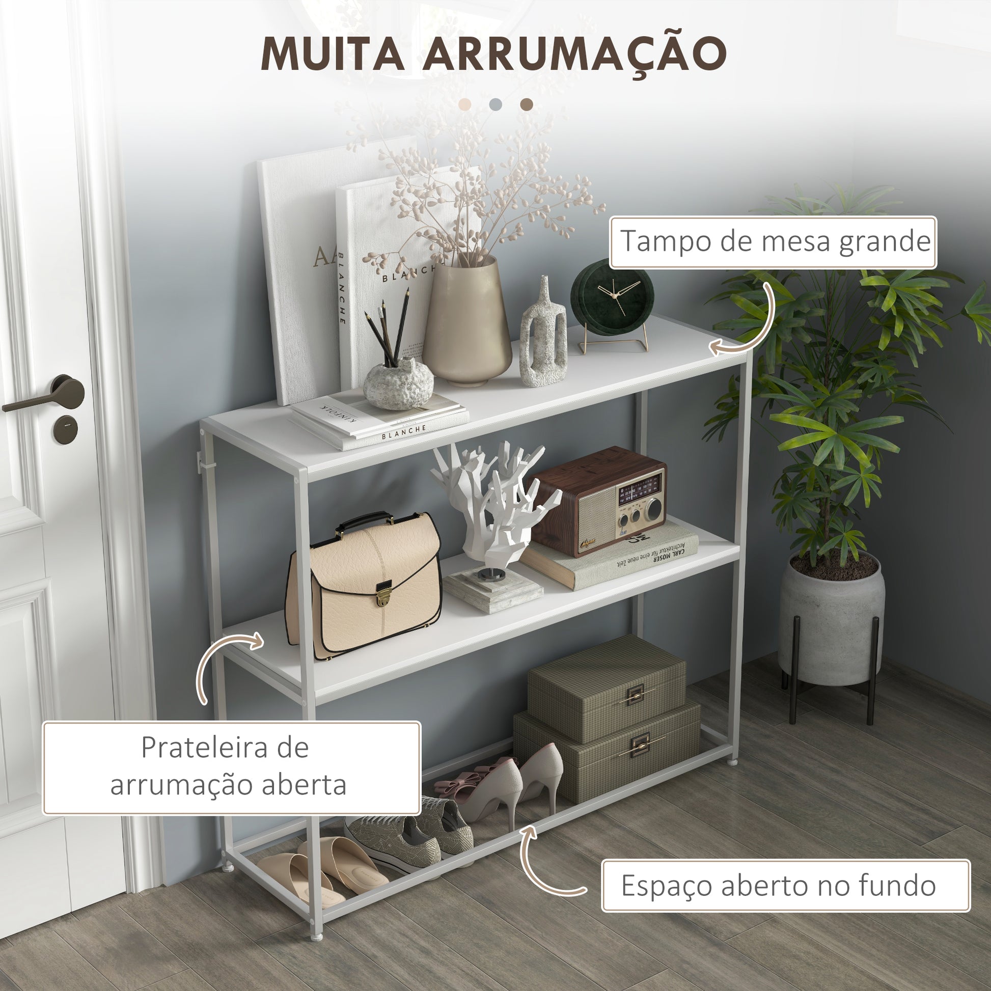 Mesa Consola de Entrada Branca 100x30x87 cm - Estante Aberto e Estrutura de Aço