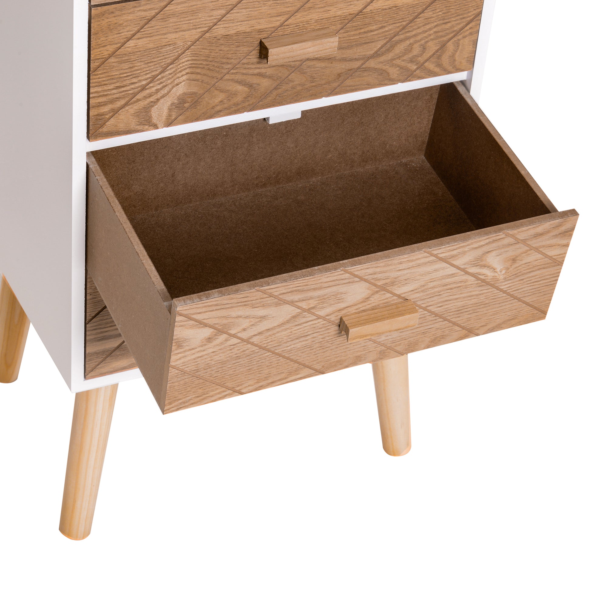 Mesa de Cabeceira 4 Gavetas 40x30x75 cm Branco e Madeira