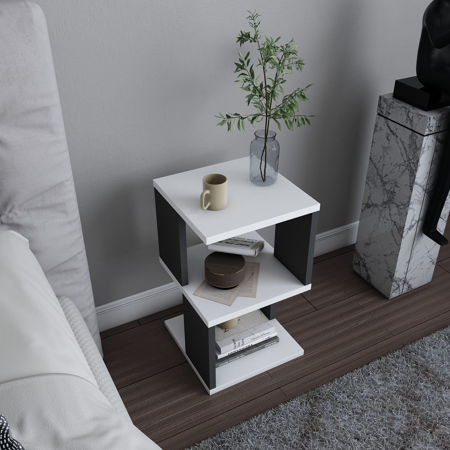 Mesa de Cabeceira Escandinava, Branca e Antracite, 29,6 x 29,6 x 49,4 cm | Painel de Partículas 100% Revestido com Melamina, 18 mm de Espessura | Solução de Armazenamento Elegante e Funcional