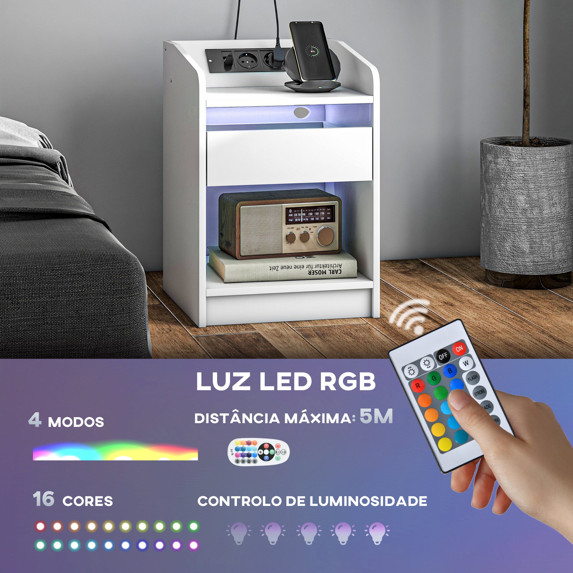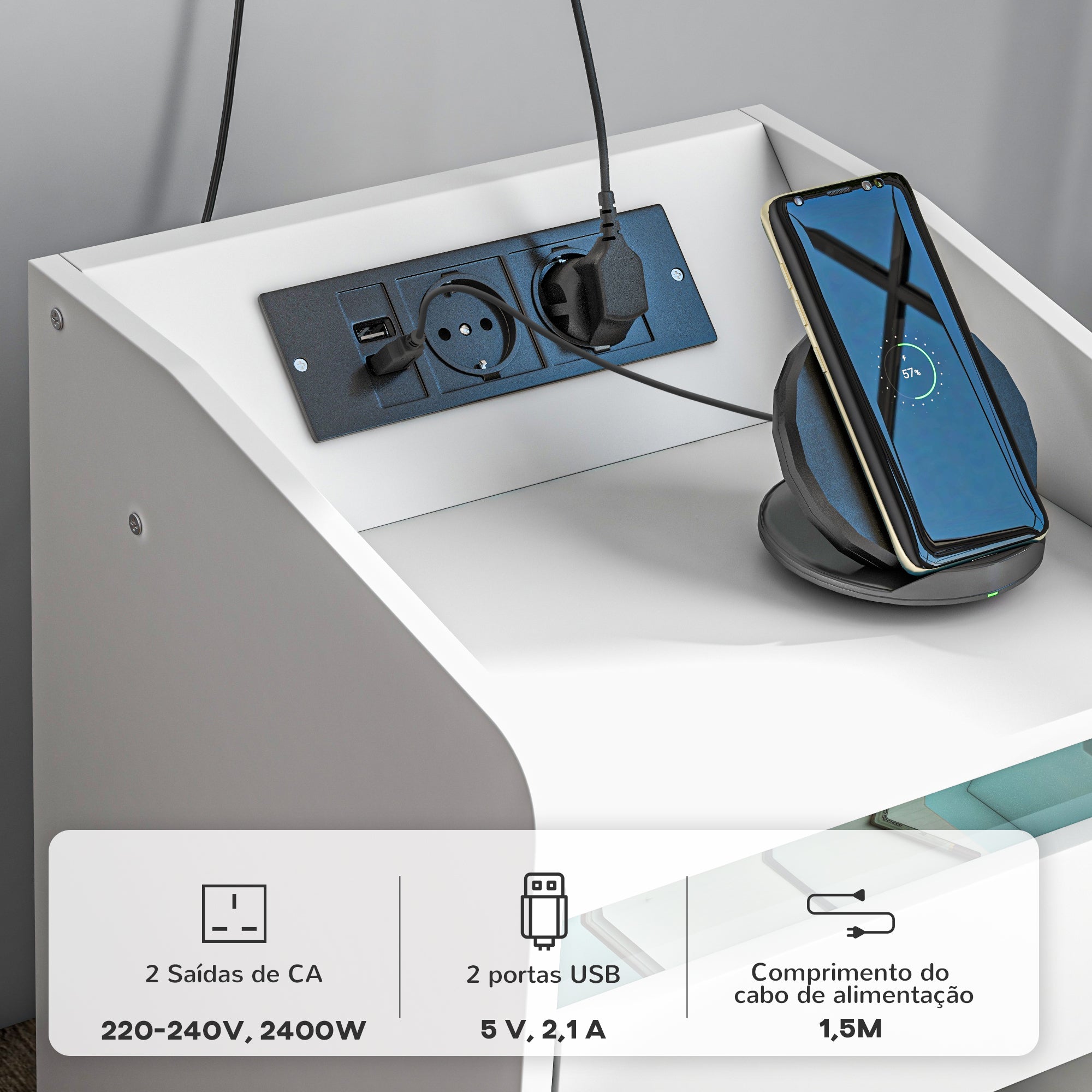 Mesa de Cabeceira com Luzes LED 40x40x58 cm - Branco