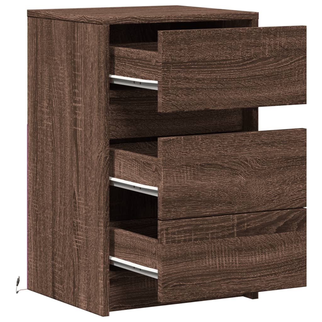 Mesa de cabeceira com luzes LED derivados de madeira branco