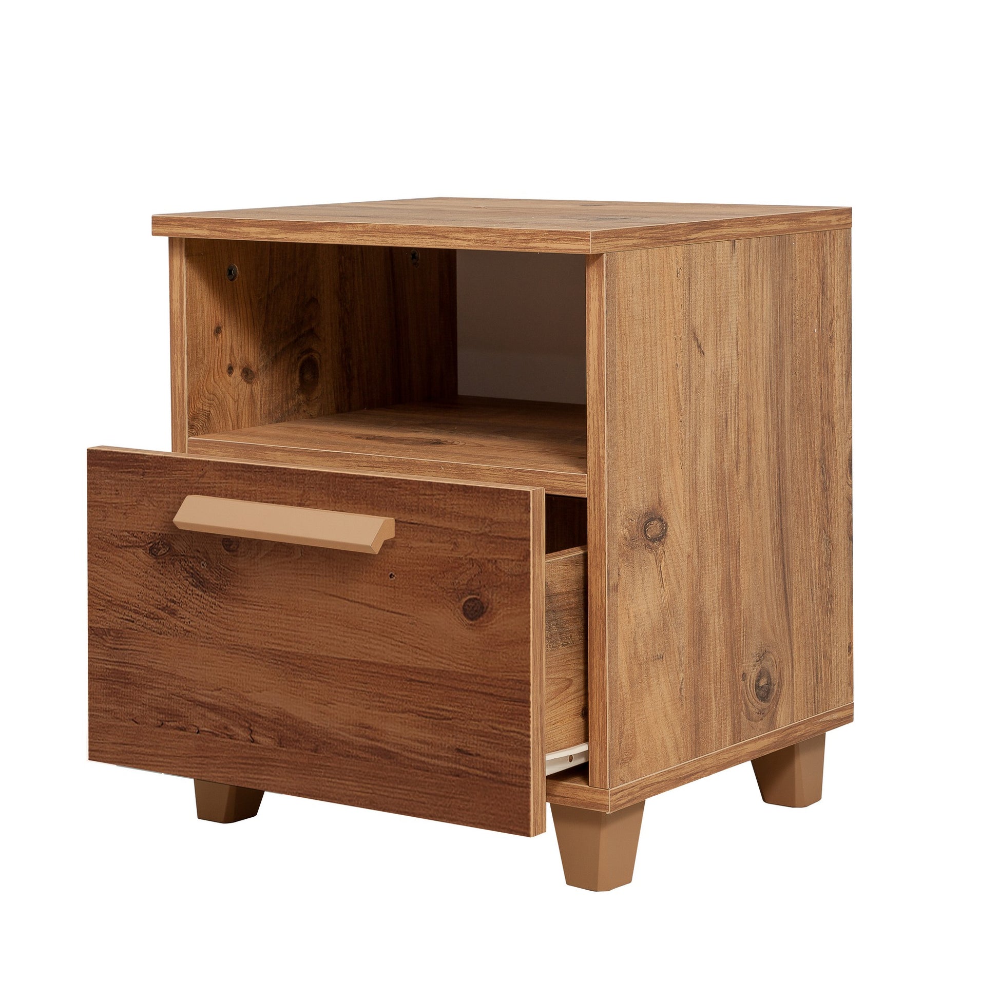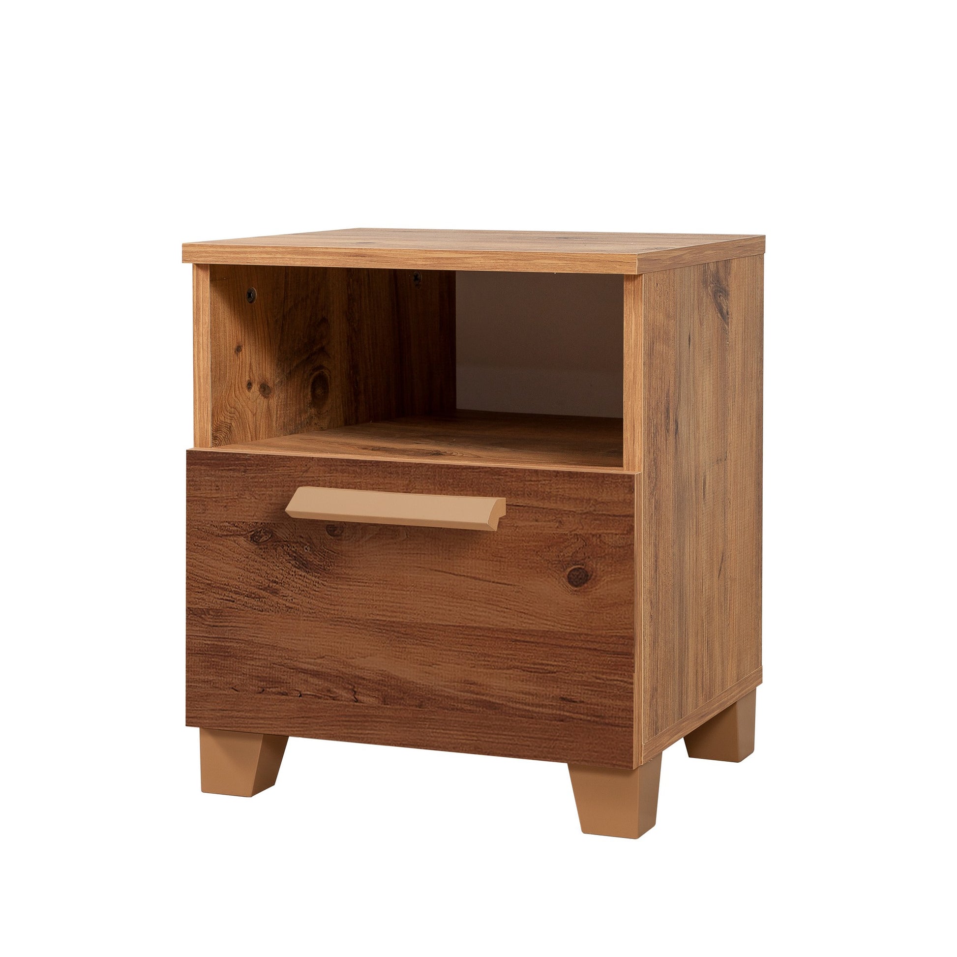 Com um design moderno e inovador, a nossa mesa de cabeceira é o complemento perfeito para qualquer quarto. As suas linhas elegantes e simples conferem um toque de sofisticação, enquanto a cor pinho atlântico confere calor e elegância ao seu espaço.