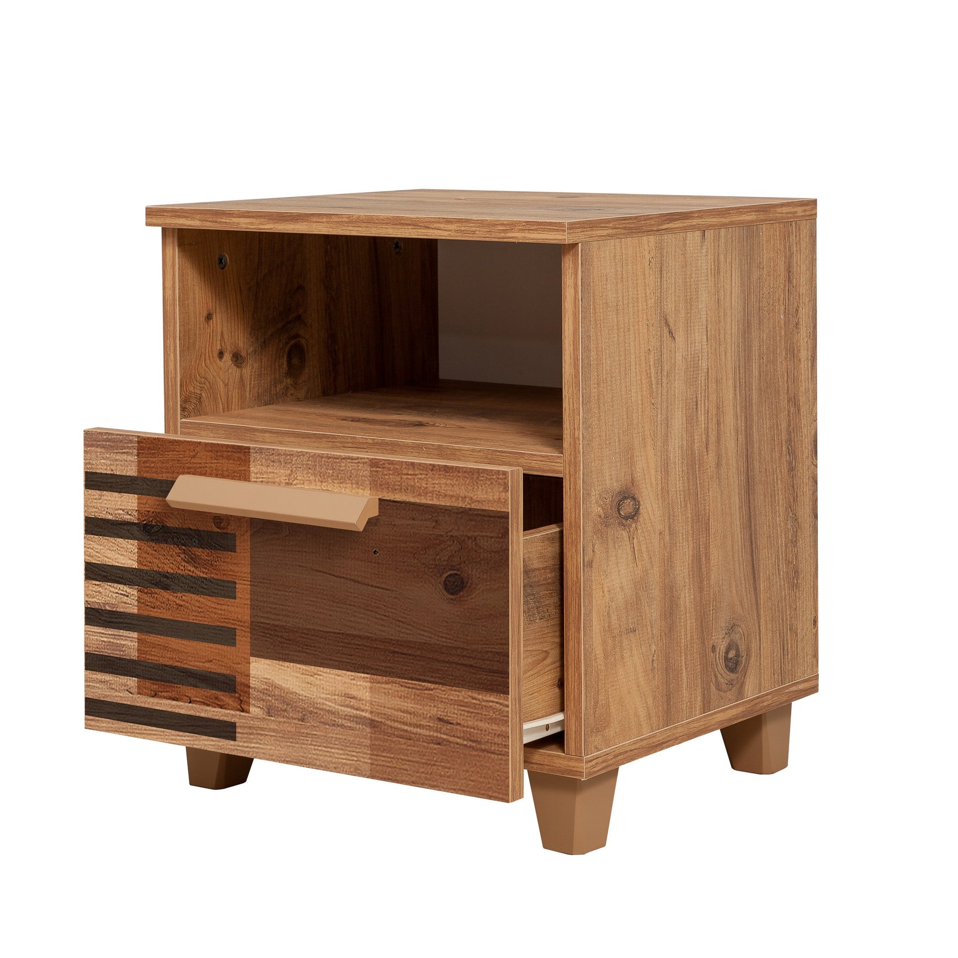 Com uma cor deslumbrante de pinho atlântico, a nossa mesa de cabeceira integra-se sem esforço em qualquer estilo de interior. Quer o seu quarto tenha um tema abstrato, moderno, inovador, geométrico ou campestre, esta mesa de cabeceira complementará a sua decoração e dará um toque de elegância.