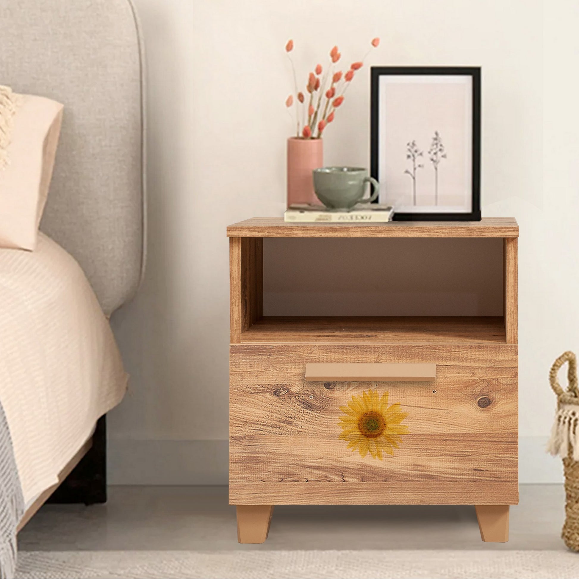 Com várias prateleiras, esta mesa de cabeceira oferece muitas opções de arrumação para os seus objectos essenciais. Mantenha os seus livros, óculos e outros objectos ao seu alcance, tornando-a conveniente para a sua rotina de deitar. O espaço de arrumação adicional permite-lhe arrumar o seu quarto e criar um ambiente sereno.