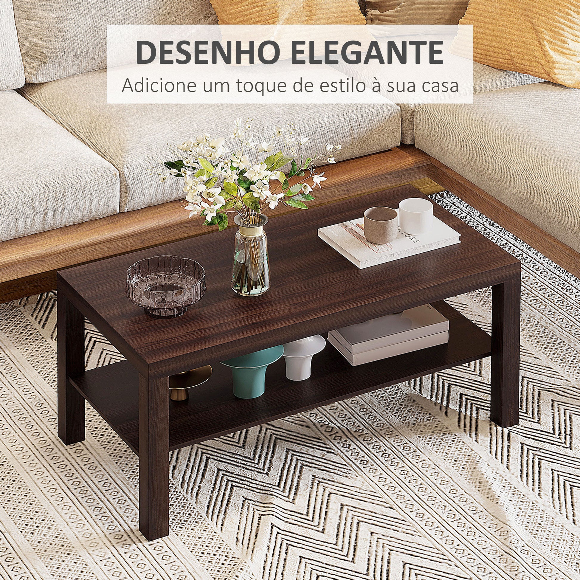 Esta mesa de centro retangular com estilo elegante e cor de nogueira é perfeita para adicionar um toque de elegância a qualquer espaço da sua casa. Com prateleira na parte inferior, oferece amplo espaço para decorações, controlo remoto, livros e muito mais.
