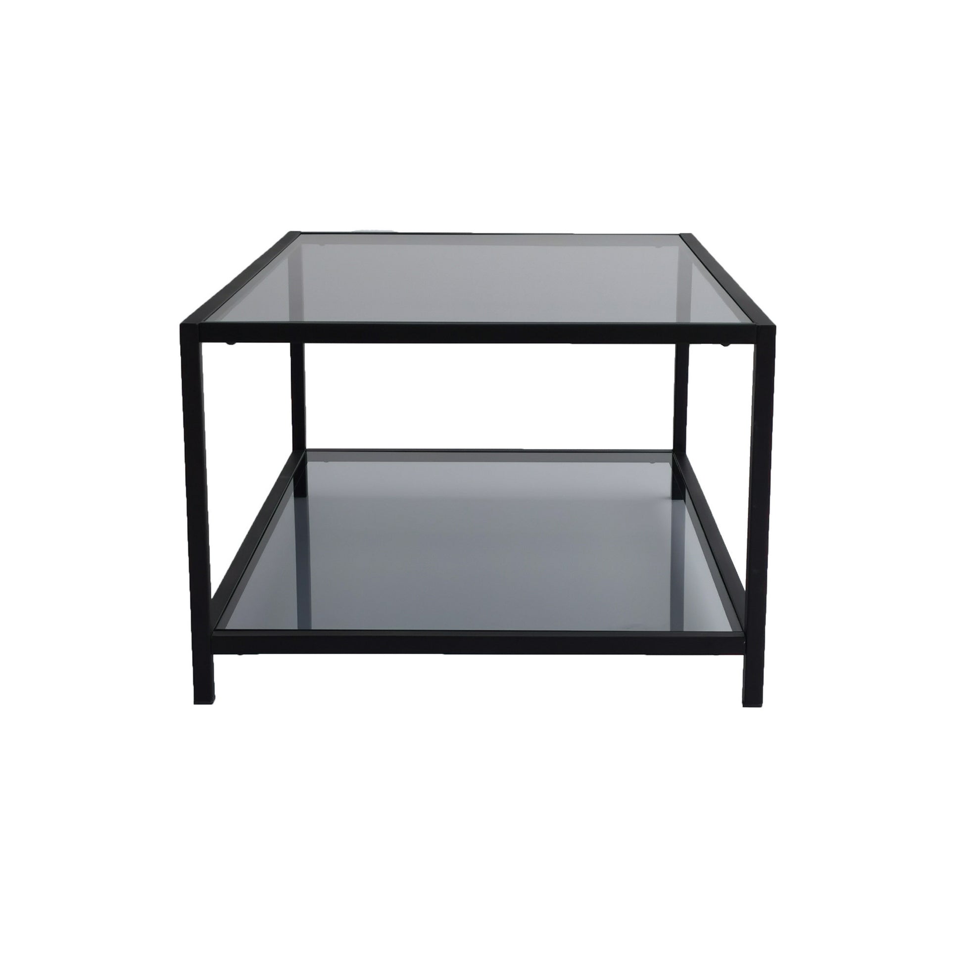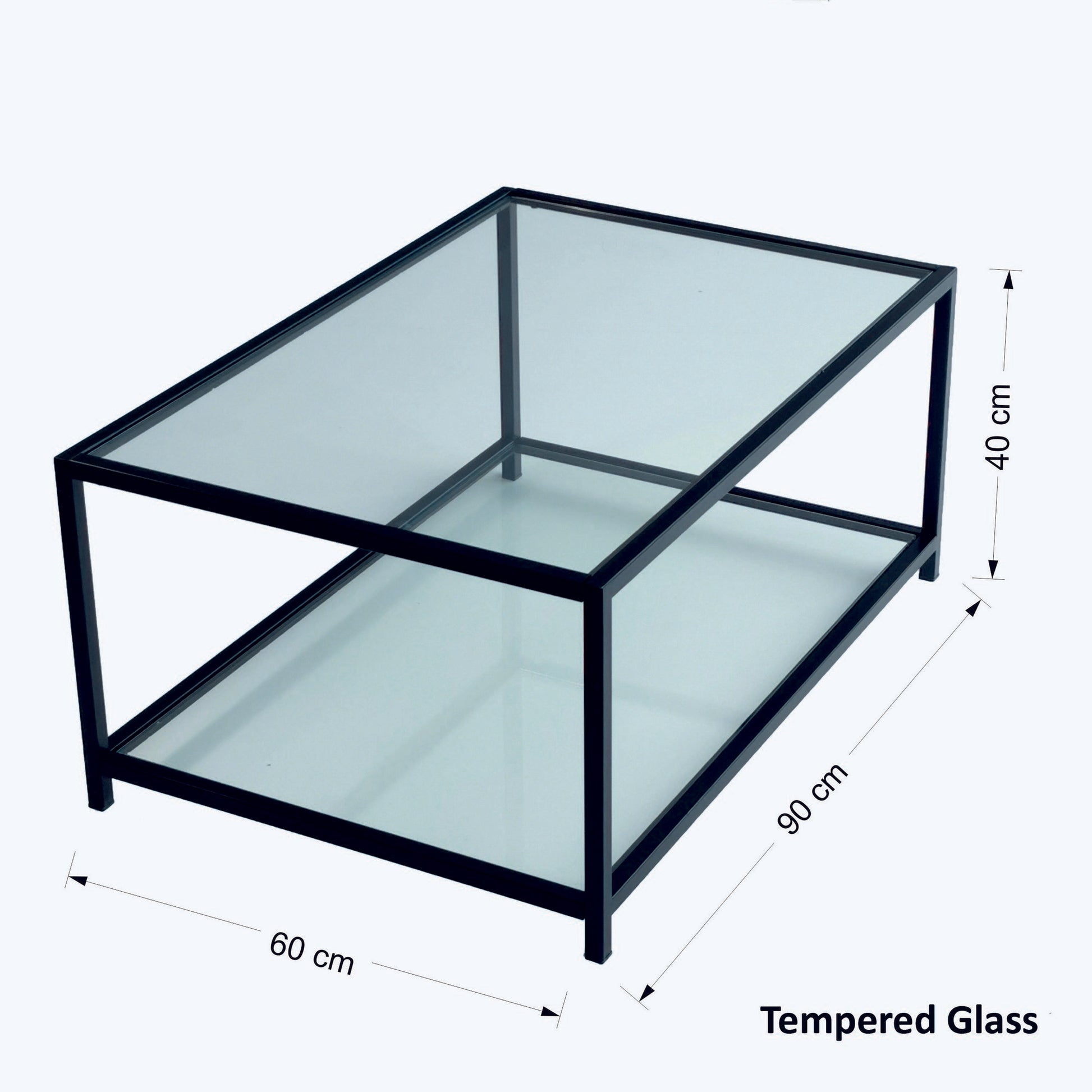 Mesa de Centro Moderna, Fumê e Preto, 90 x 60 x 40 cm | Vidro 100% Temperado (4 mm) e Estrutura de Metal | Design Industrial Elegante para Casa e Escritório