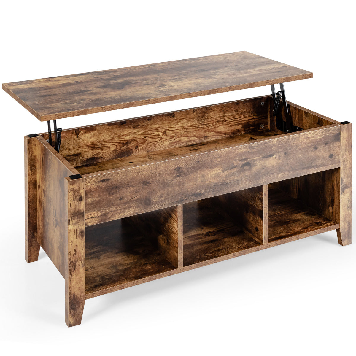 Procura uma mesa para desfrutar de uma chávena de café? Pretende ter à mão o que mais utiliza? Então, precisa de uma mesa de centro de alta qualidade, com tampo elevatório e muito espaço para decorar a sua sala de estar. Esta nova mesa de centro com tampo elevatório ajusta-se a diferentes alturas conforme a necessidade. Sob o tampo, existe um compartimento escondido para guardar os objetos mais utilizados, como livros, revistas e comandos. Além disso, possui três prateleiras abertas na parte inferior para colocar outros objetos, maximizando assim o espaço disponível. Esta mesa será a escolha certa. Não hesite mais e adquira-a já!