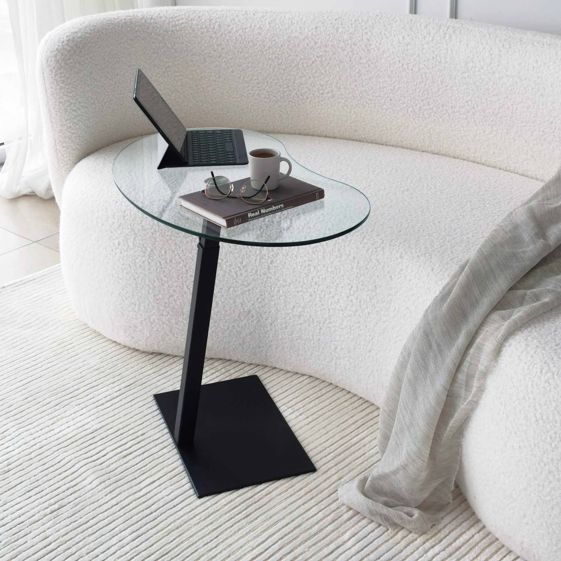 Mesa de Centro Moderna com Tampo 100% em Vidro Temperado, Estrutura em Metal Preto, Pernas Antibacterianas e Antiferrugem, Altura Ajustável, 70x75x40 cm | Design Industrial Elegante