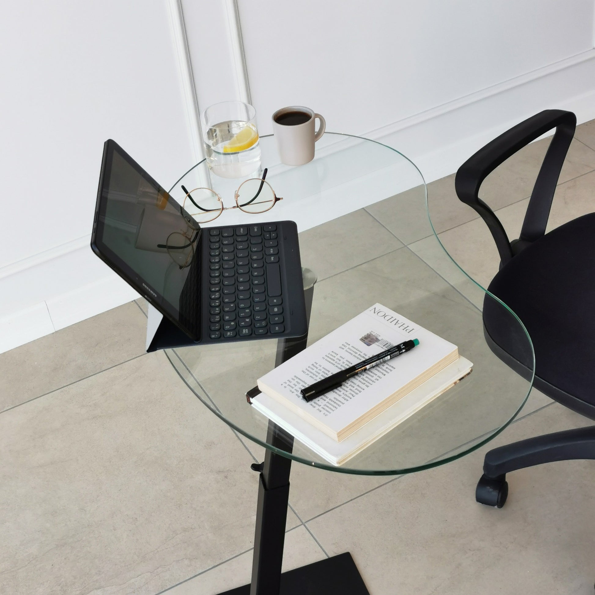 - Material: 100% vidro temperado, estrutura metálica