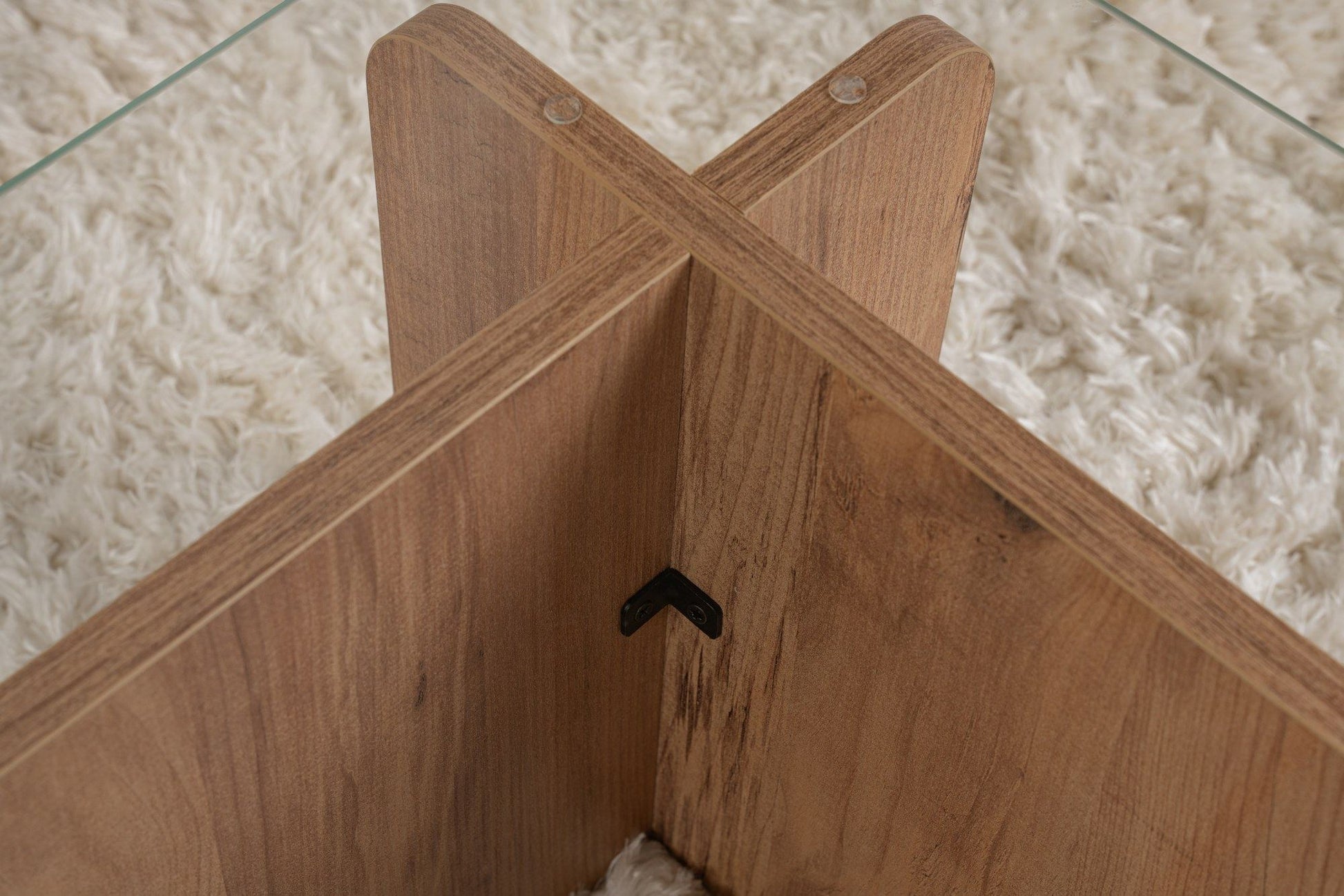 Mesa de Centro Elegante, Pinho Atlântico, 105 x 30 x 65 cm | Tampo 100% Vidro Temperado, Estrutura com Revestimento em Melamina de 18 mm de Espessura | Perfeita para Espaços Modernos