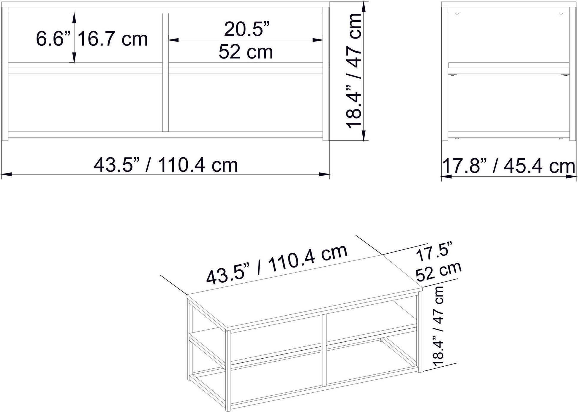 - Altura da prateleira: 16,7 cm