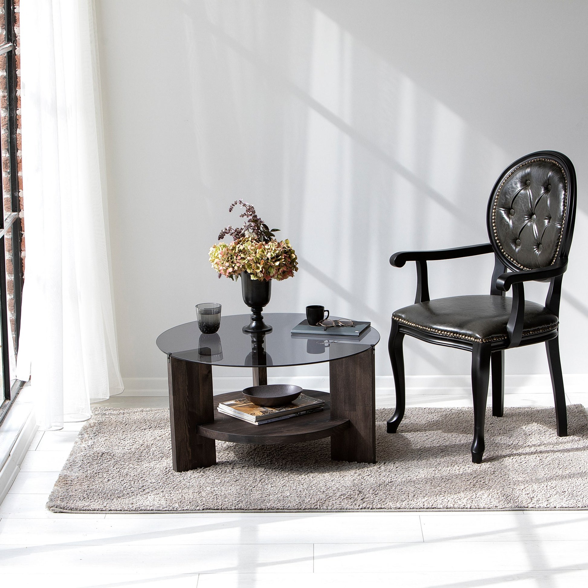 Mesa de Centro Elegante, 75 cm x 40 cm x 75 cm | 100% Vidro Temperado e Estrutura em Madeira Maciça de Pinho | Antracite e Marrom Escuro | Perfeita para Espaços Modernos