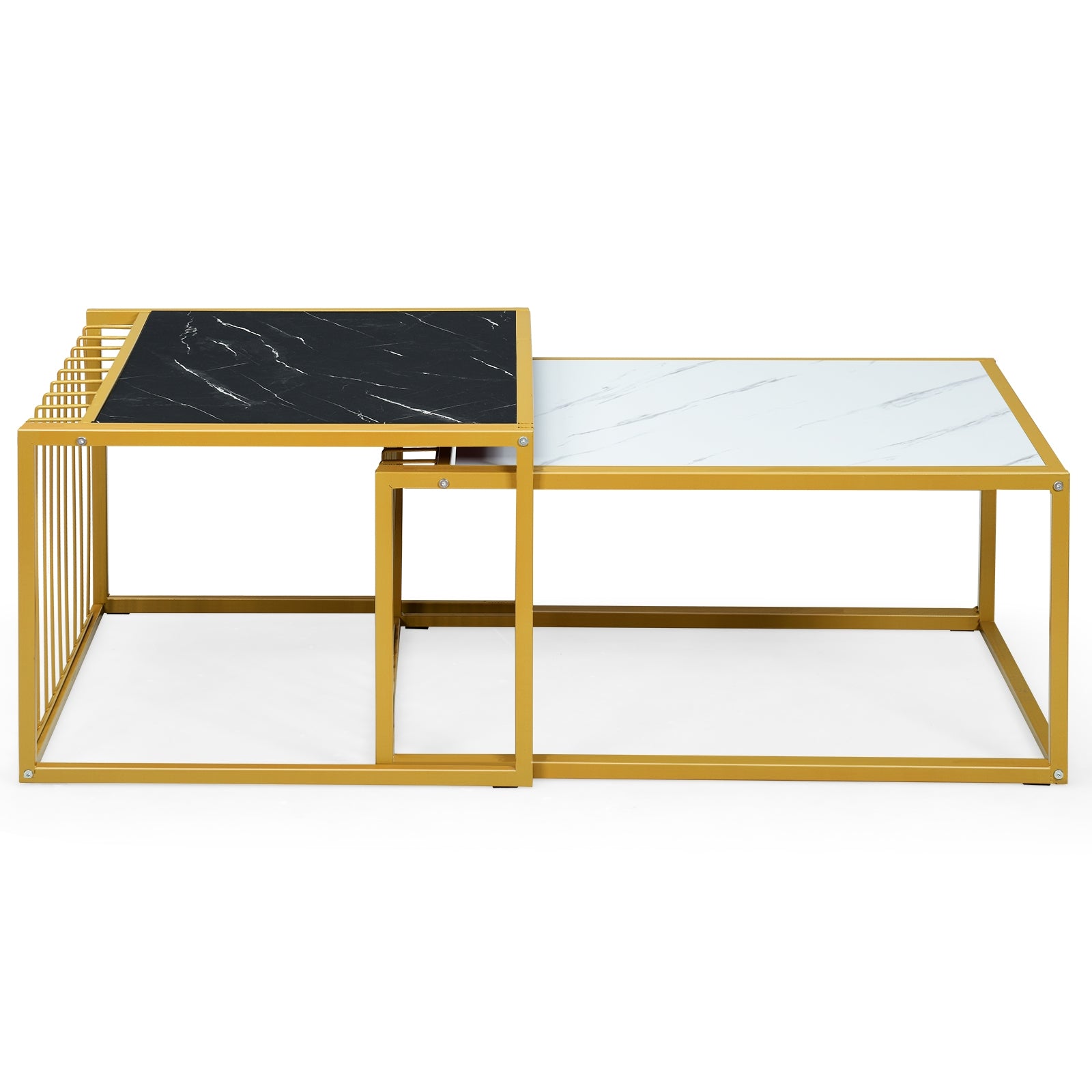 Este conjunto de mesas é lindíssimo e prático. Sejam utilizadas em conjunto ou separadamente, têm um design elegante que fica bem em casa. Podem ser usadas como mesa auxiliar, mesa de cabeceira, mesa de sofá, etc., conforme as suas necessidades. Além disso, a superfície em falso mármore confere-lhes um visual único e é mais leve do que o mármore real. A superfície quadrada é conveniente para colocar vários objetos. Possuem uma estrutura resistente em metal com ligações sólidas e são fáceis de montar.