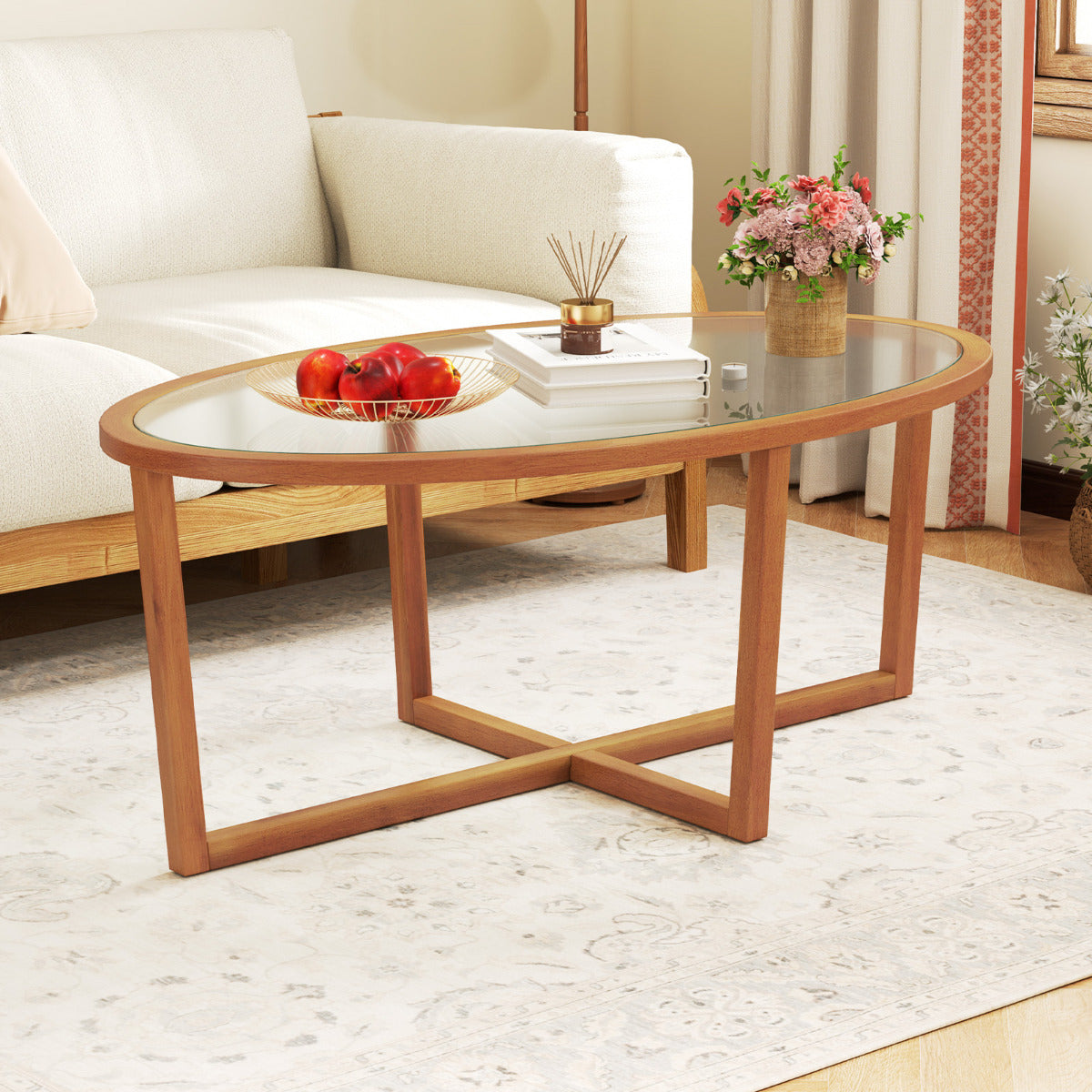 Eleve o estilo da sua sala de estar com esta deslumbrante mesa de centro ovalada de vidro, uma peça central essencial que combina elegância com praticidade! Sua ampla superfície é perfeita para desde decorações elegantes até artigos essenciais do dia a dia. Suportada por elegantes e resistentes pernas de madeira de acácia, esta mesa de acento não só tem um visual incrível, mas também é construída para durar. O seu design moderno e elegante complementa perfeitamente qualquer estilo, enquanto a sua montagem simples permite que desfrute desta bela adição em pouco tempo. Aumente a sofisticação do seu espaço, adicione esta peça essencial à sua casa hoje mesmo!