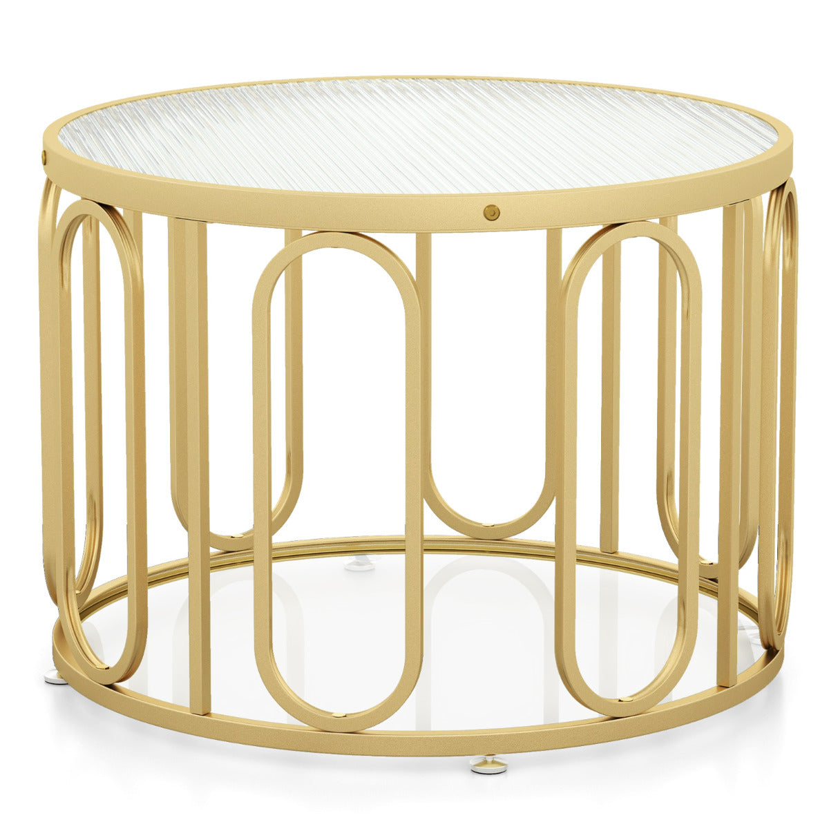 Mesa de Centro Redonda – 60,5 cm – Dourada – Vidro Temperado e Metal
