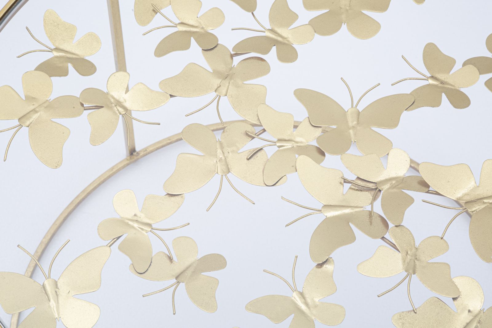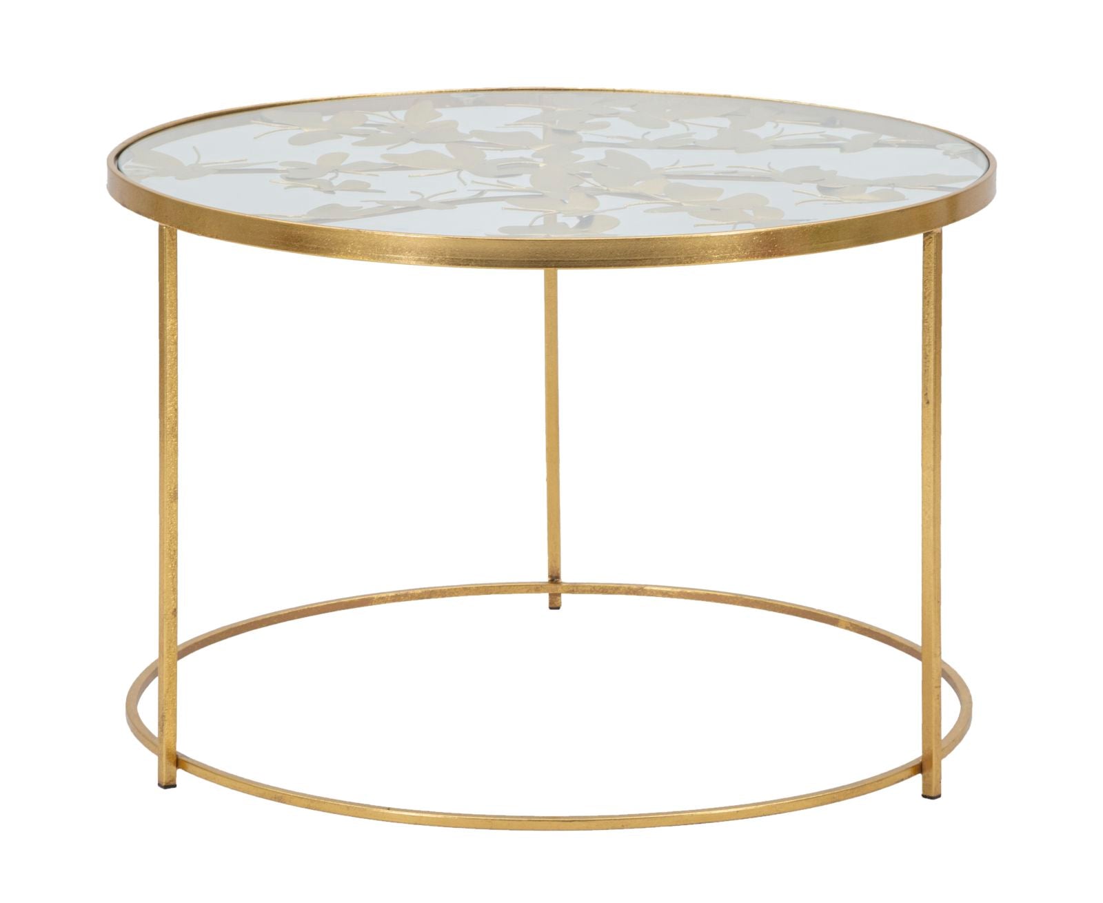 Descubra a sofisticação e elegância da Mesa de Centro Redonda GLAM, uma peça deslumbrante que transforma qualquer sala. Com um design minimalista e toques de classe, esta mesa combina metal dourado com um tampo de vidro, proporcionando um equilíbrio perfeito entre modernidade e luxo. As decorações em forma de borboletas debaixo do tampo adicionam um detalhe requintado e inesperado, tornando-a num verdadeiro destaque. Ideal para quem aprecia a arte do design sem comprometer a funcionalidade, esta mesa é a escolha perfeita para elevar o seu espaço com charme intemporal.
