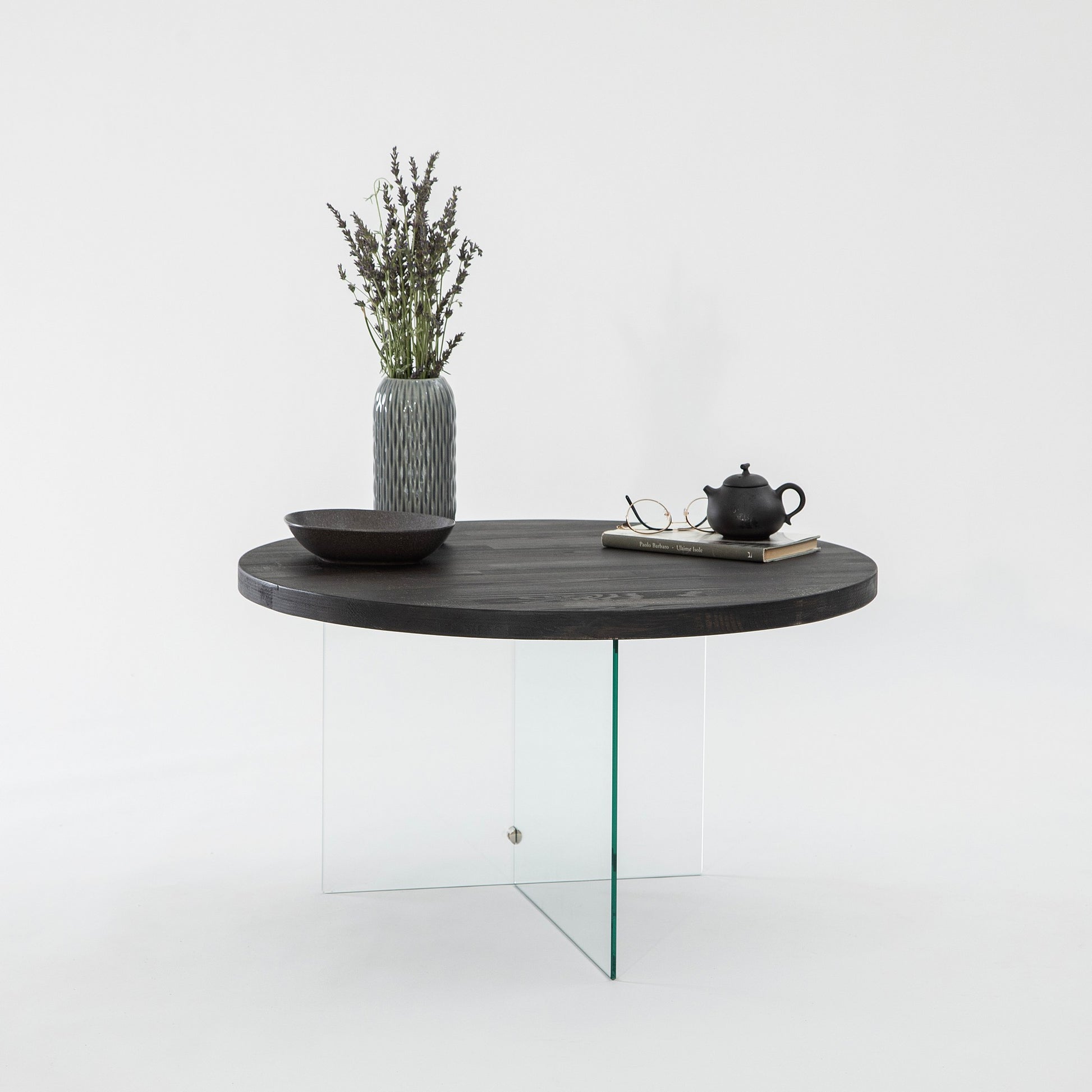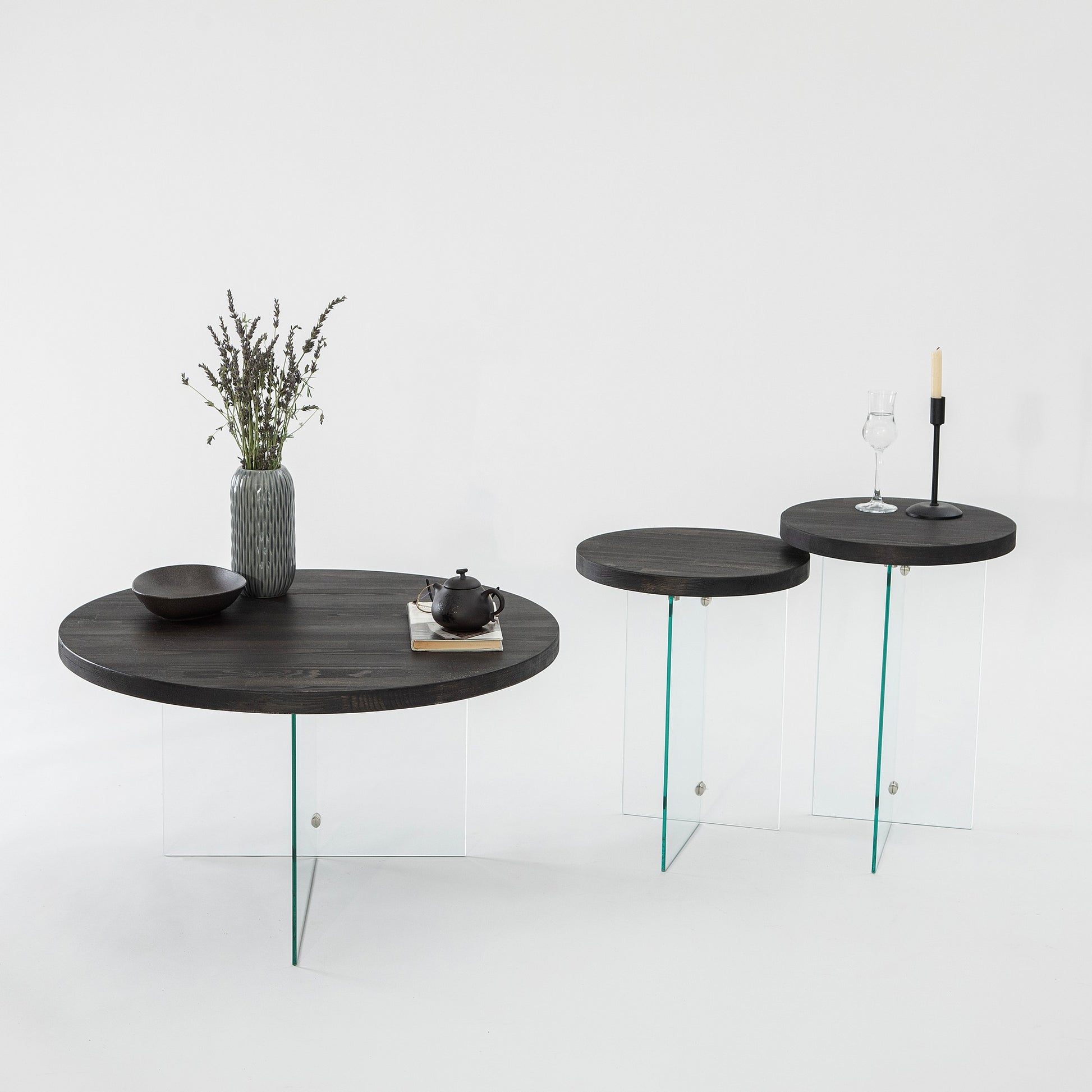 Mesa de Centro Elegante, 70 cm de Largura, 40 cm de Altura | 100% Vidro Temperado e Estrutura em MDF | Antracite e Transparente | Design Moderno para Sala de Estar e Lounge