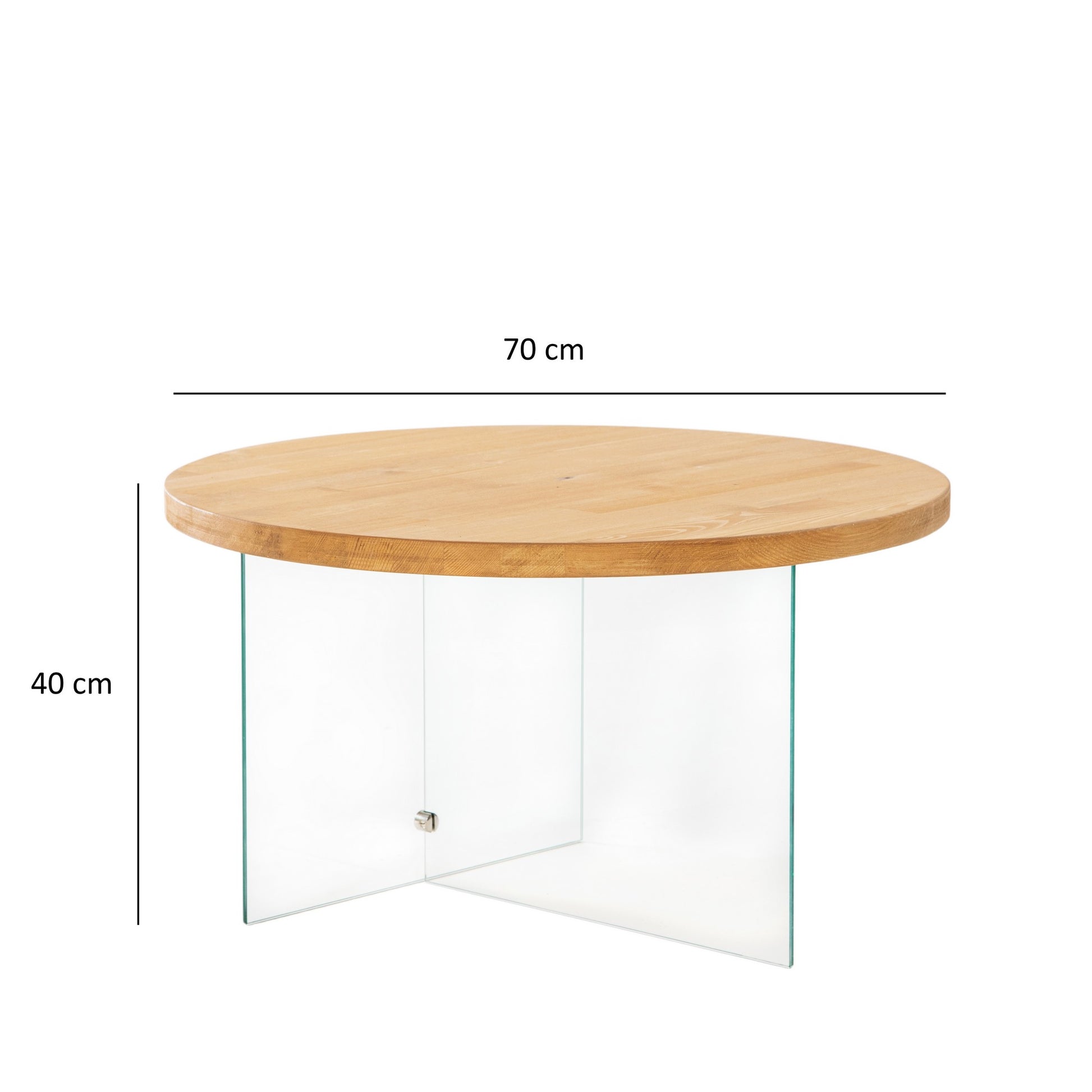 Mesa de Centro Elegante, 70 cm de Largura x 40 cm de Altura, 100% Vidro Temperado e Estrutura em MDF, Transparente e Acabamento em Carvalho | Design Moderno para Sala de Estar e Lounge