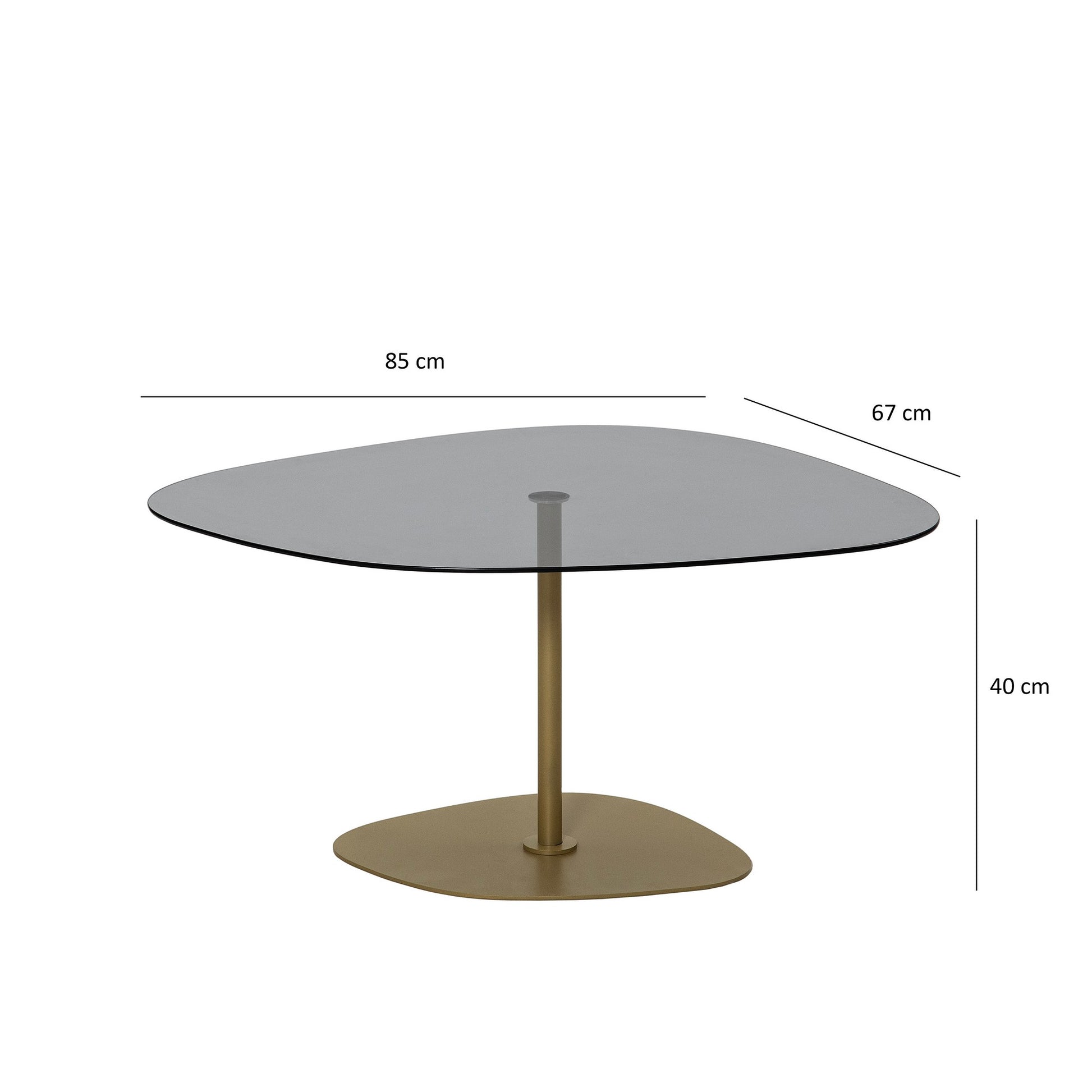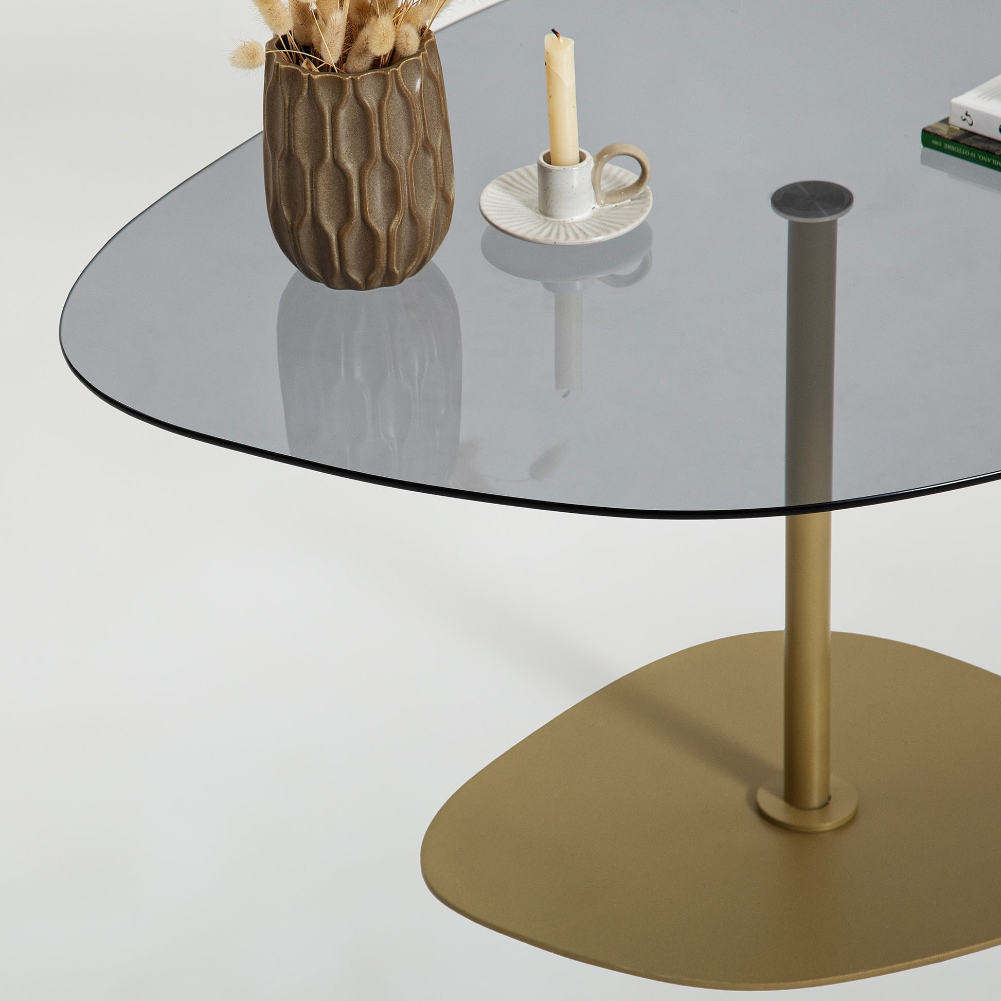 Mesa de Centro Elegante com Tampo de Vidro Temperado, Cinza Escuro e Dourado, 85 x 67 x 40 cm | Pernas de Metal Resistente, Desmontável para Fácil Montagem | Elegância Moderna