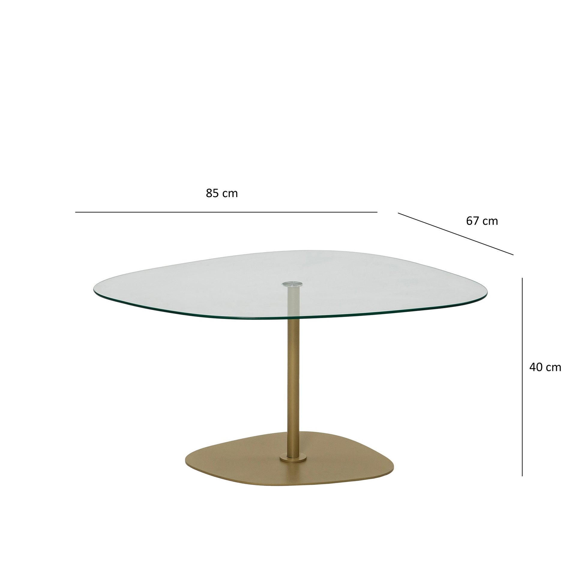 Mesa de Centro Elegante com Tampo de Vidro Temperado, 85 x 67 x 40 cm, Pés de Metal, Acabamento Transparente e Dourado | Design Moderno e Elegante para Sala de Estar