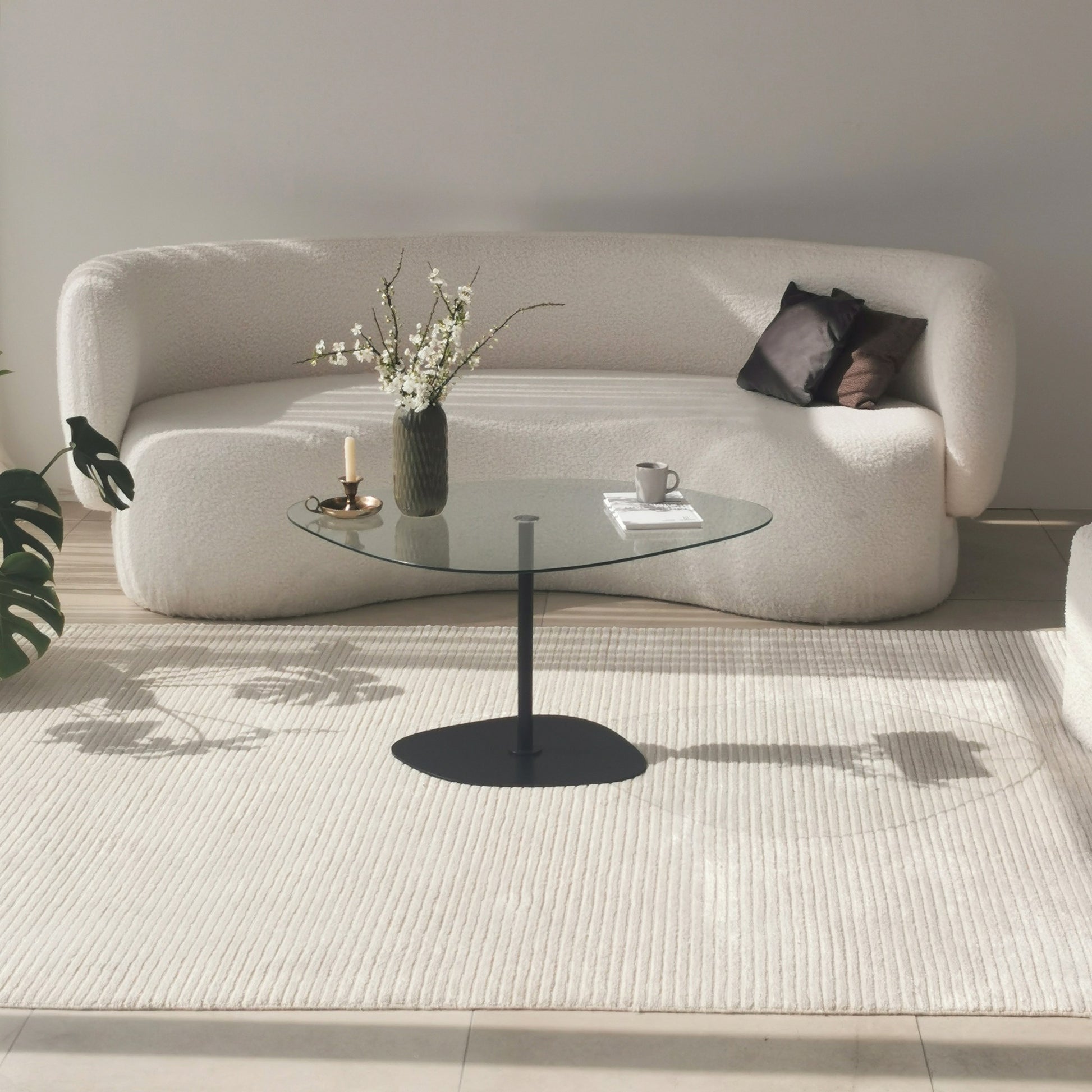 Fabricada em vidro 100% temperado, esta mesa de centro não é apenas um deleite visual, mas também garante uma resistência e durabilidade excepcionais. O tampo de vidro transparente exibe lindamente os seus objectos de decoração favoritos, enquanto a prateleira de vidro preto acrescenta um toque de mistério e fascínio.