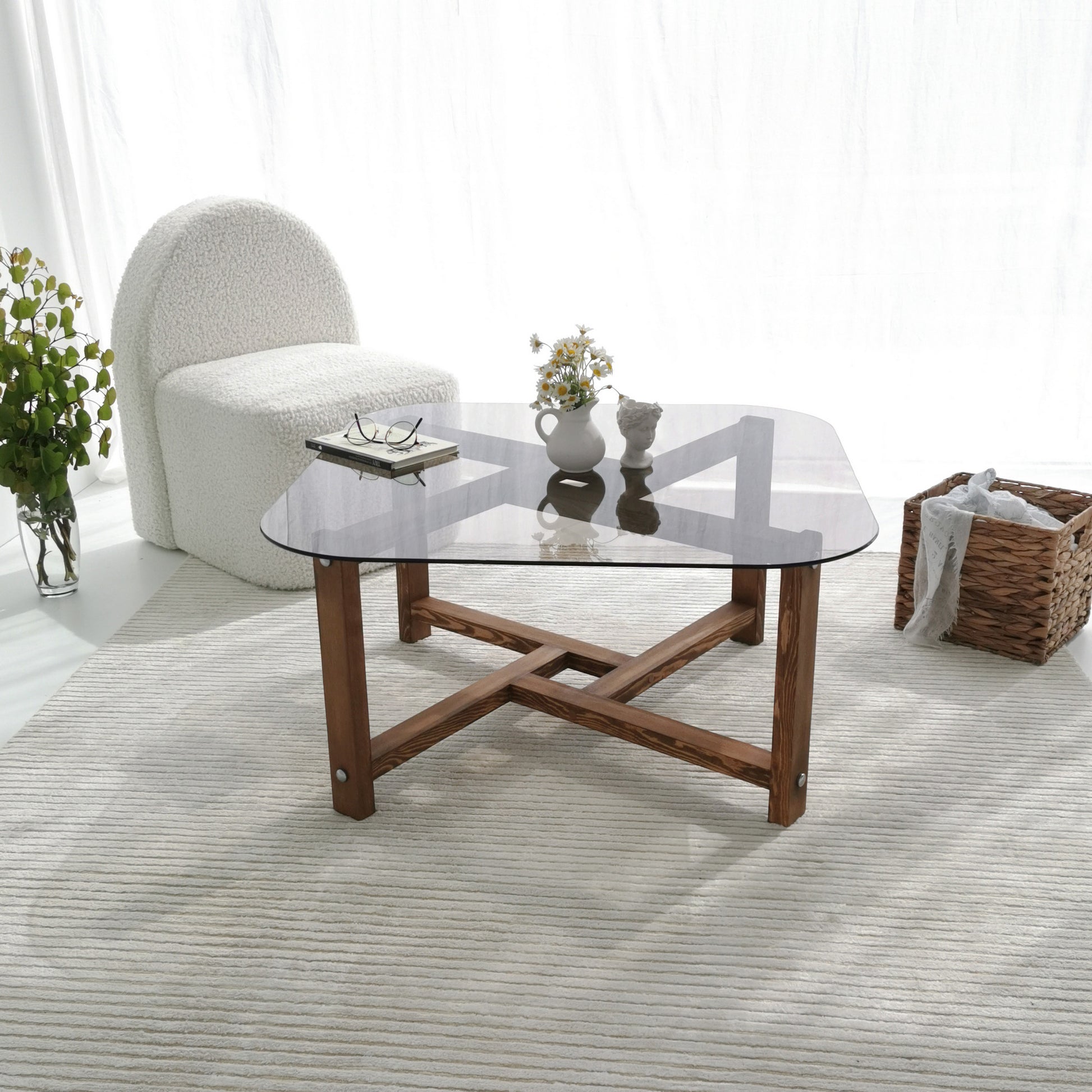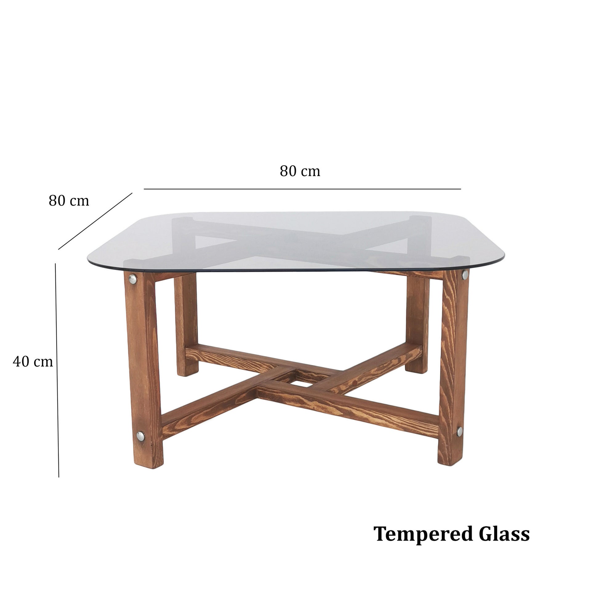 Mesa de Centro Moderna, Cor Carvalho, 80 x 40 x 80 cm | Tampo 100% Vidro Temperado, 6 mm | Estrutura em Madeira Maciça de Pinho | Elegante para Casas Rústicas e Tradicionais