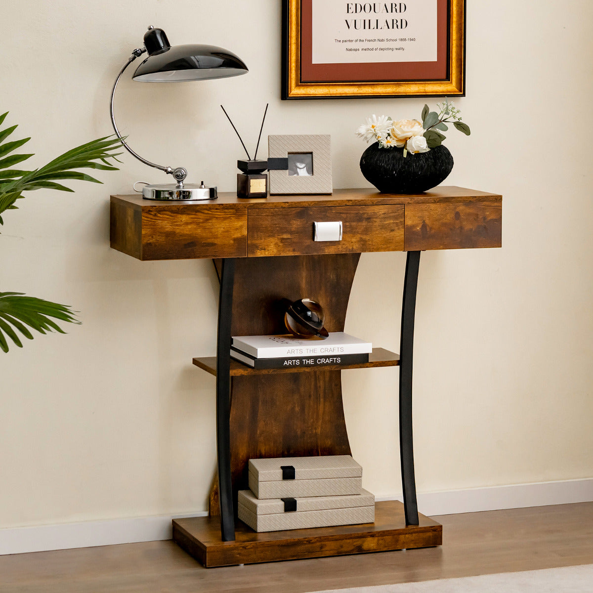 - Design Compacto em Forma de T: Além de funcional, a mesa tem um design elegante que se adapta a diferentes estilos de decoração. Ideal para a entrada, sala de estar, quarto, cozinha, etc.