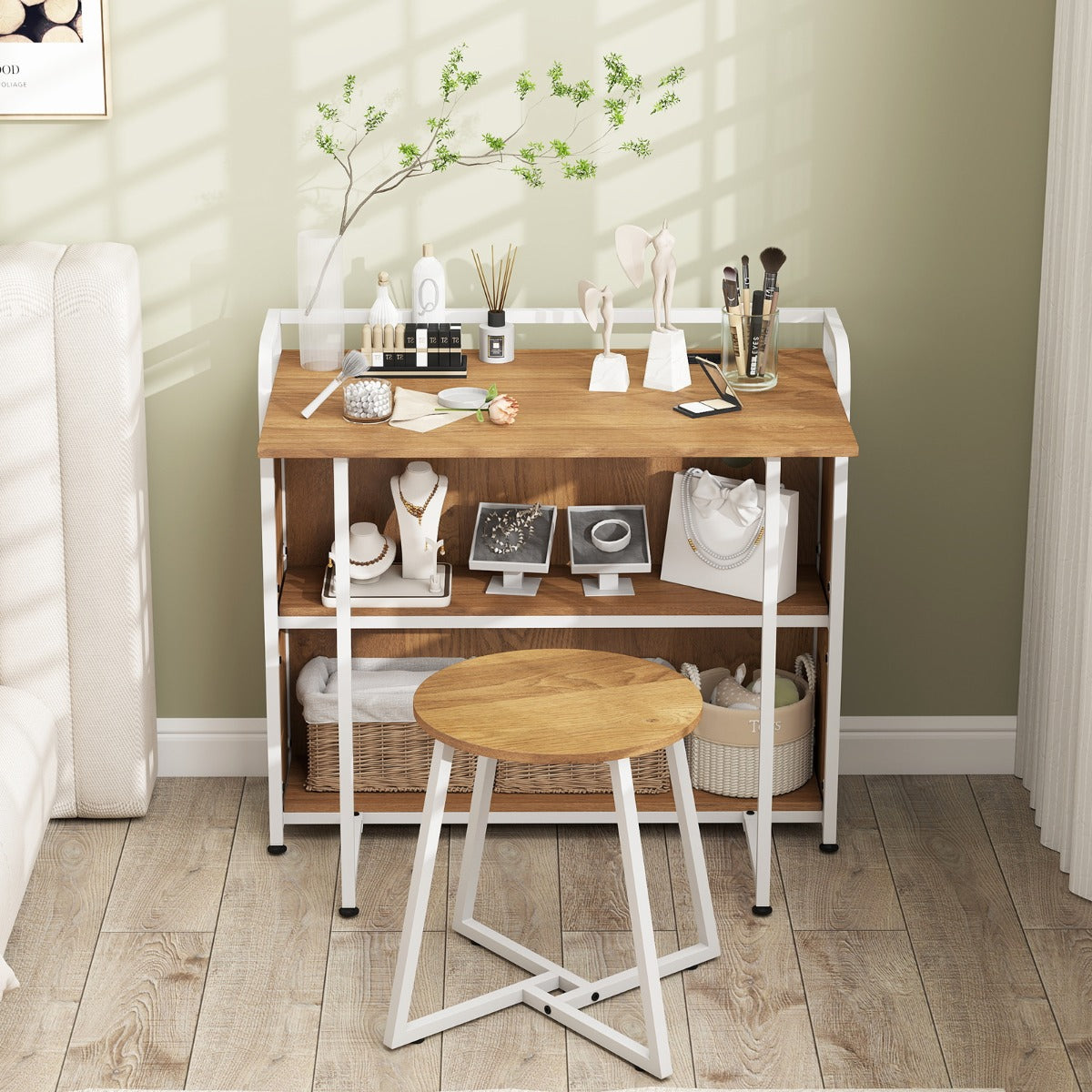 Mesa de Escritório com Banqueta Mesa de Computador com Tabuleiro Dobrável 2 Prateleiras Mesa de Escritório com 2 Tomadas USB e Porta Tipo-C Natural