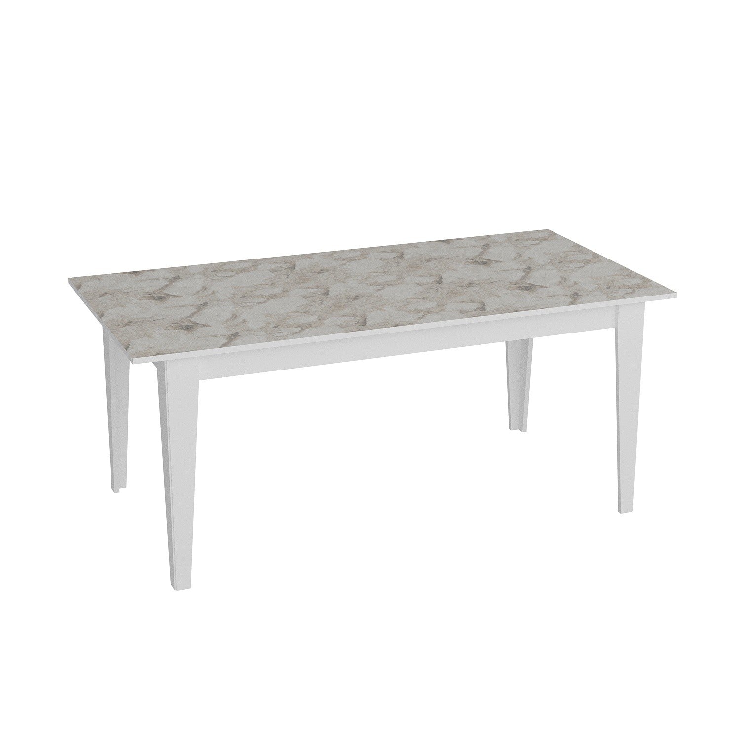 Mesa de Jantar Moderna com Padrão de Mármore, 180 x 90 x 76,8 cm | Painel de Partículas 100% Revestido com Melamina, 18 mm de Espessura | Design Branco Elegante para Uso Multiuso