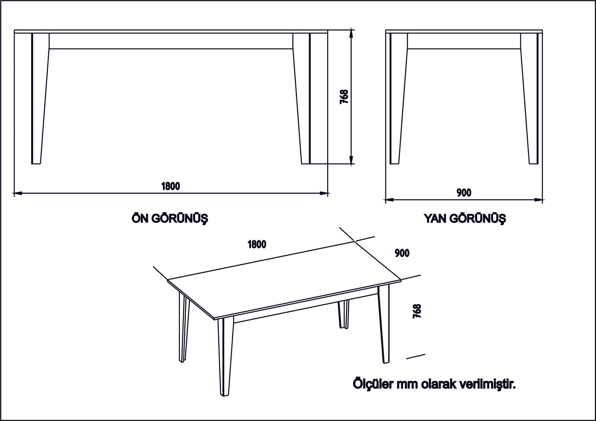 - Tamanho da mesa de jantar: Largura: 180 cm, Altura: 76. 8 cm, profundidade: 90 cm