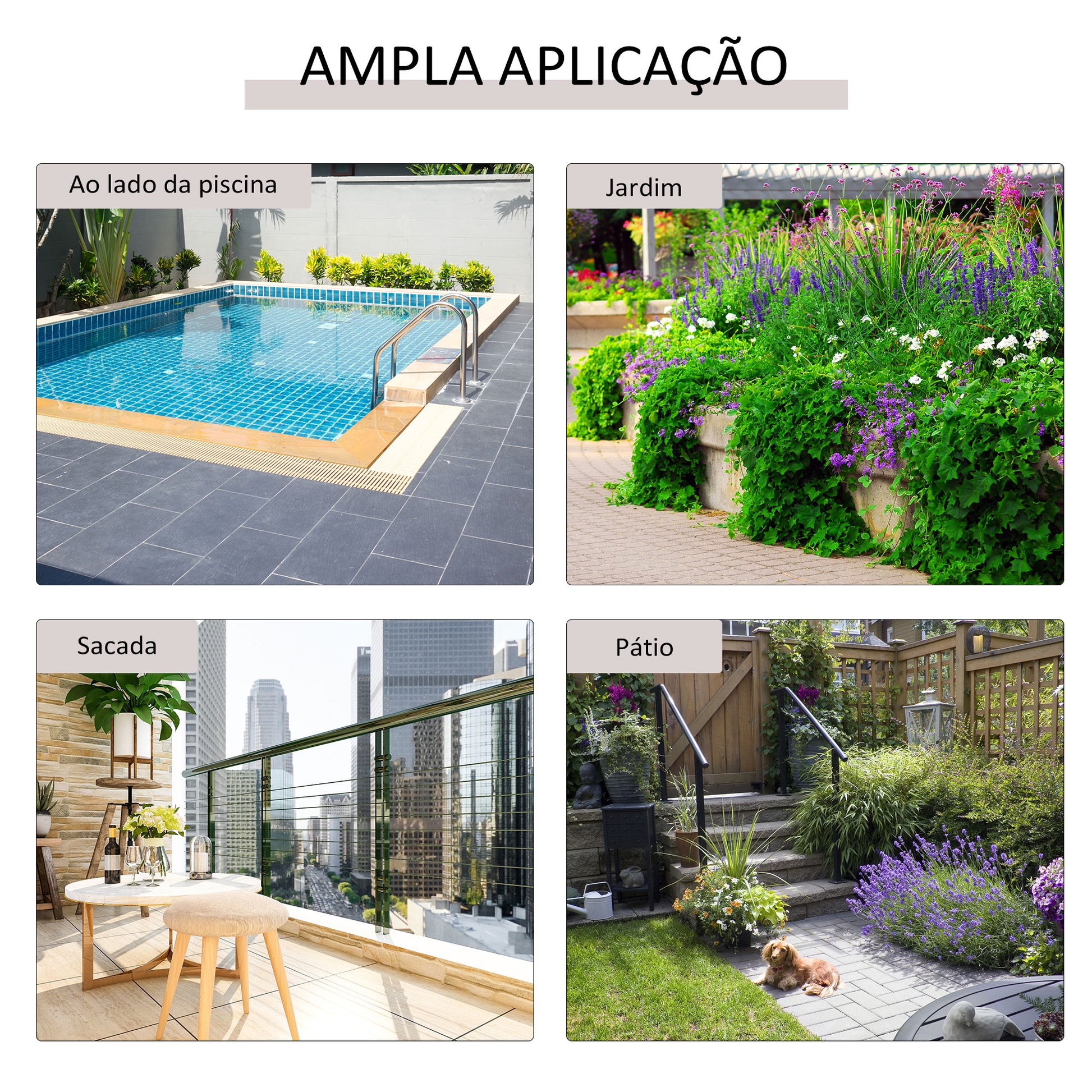 - Benefícios: Resistente às intempéries, leve e fácil de limpar