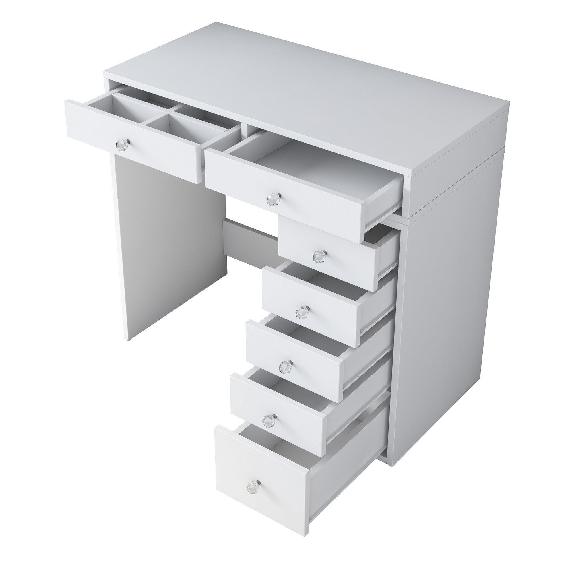 Com uma largura de 90 cm, altura de 81. 6 cm e uma profundidade de 44,5 cm, a nossa mesa de maquilhagem oferece um espaço amplo para todos os seus artigos de beleza essenciais. O tampo espaçoso da mesa oferece muito espaço para os seus cosméticos, pincéis e acessórios, enquanto a gaveta incorporada mantém os seus artigos organizados e facilmente acessíveis.
