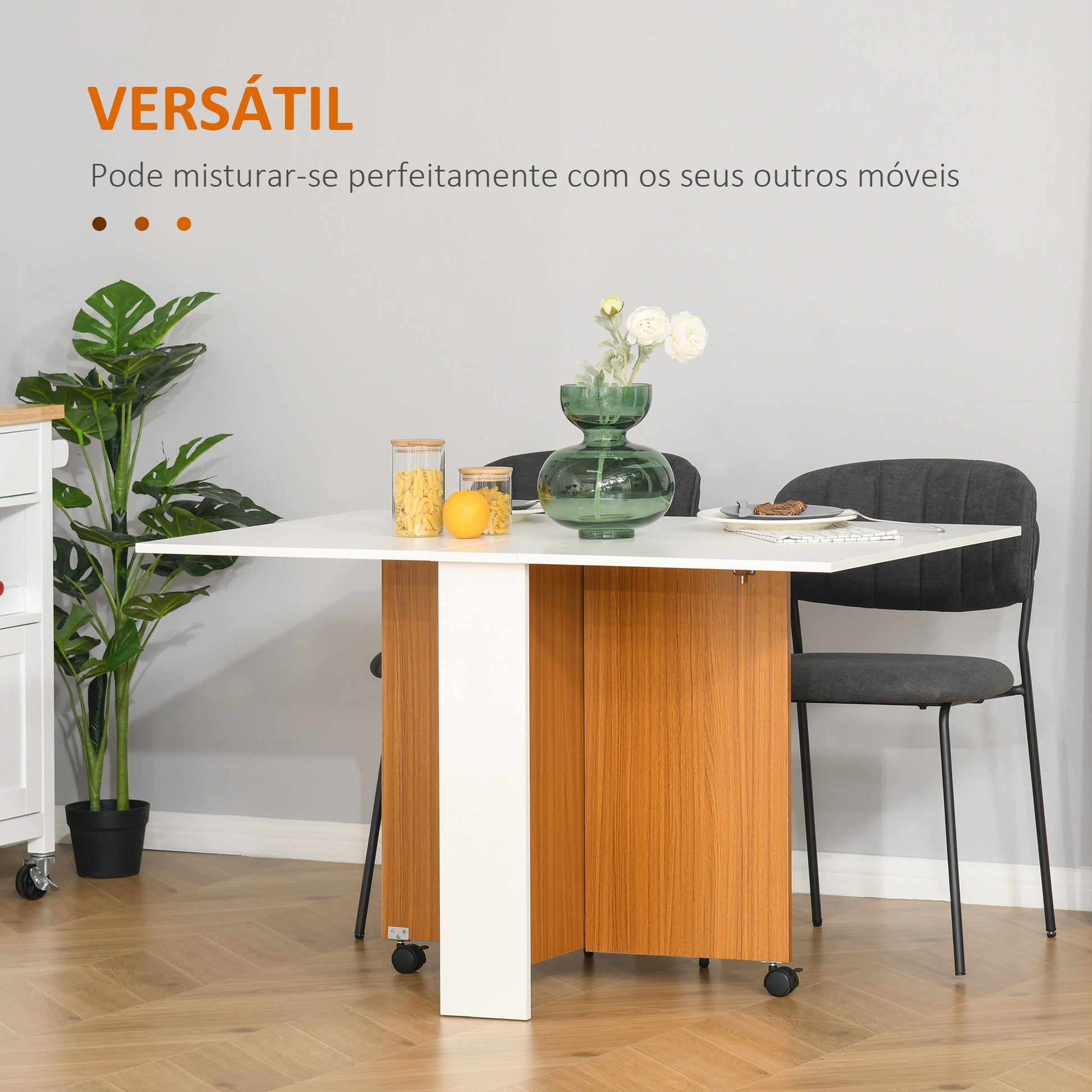 Mesa de Sala de Jantar Dobrável 120x80x73cm Branco e Teca