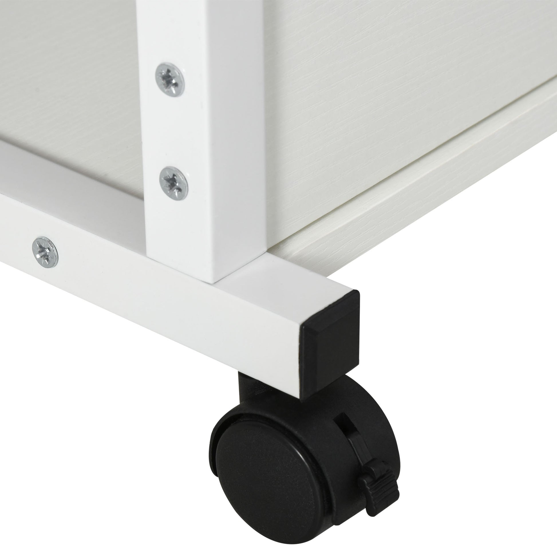 Mesa Lateral em Forma de C com 4 Rodas Giratórias e Altura Ajustável 80x40x72-82cm Branco