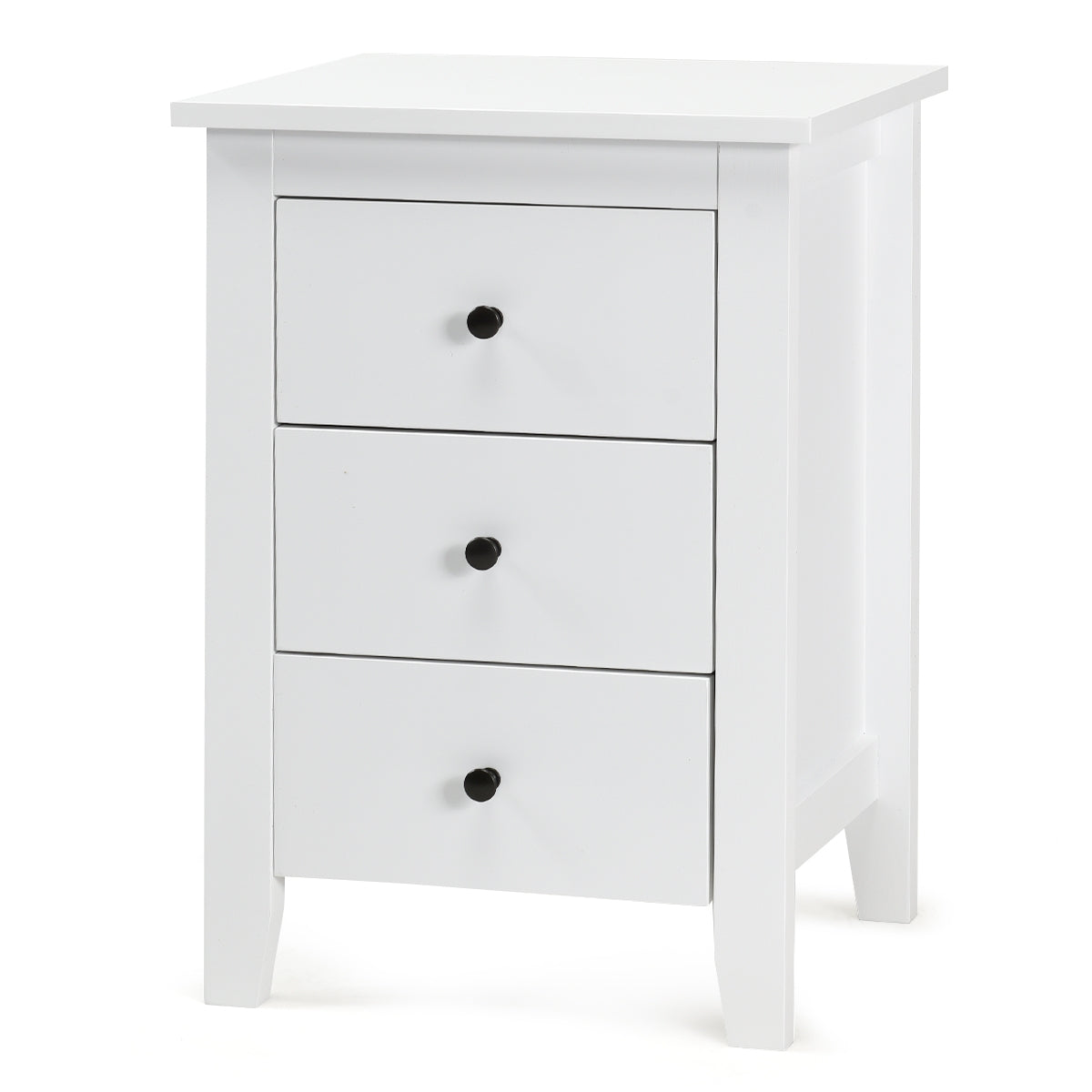 Mesinha de Cabeceira com 3 Gavetas e Estrutura Resistente para Sala e Quarto Branco 46 x 37 x 65 cm