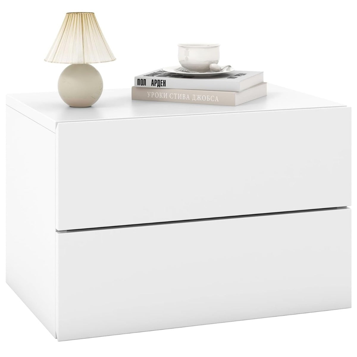 Mesinha de Cabeceira Flutuante com 2 Gavetas de Arrumação, Mesinha de Cabeceira Montada na Parede 42 x 30 x 28 cm Branco
