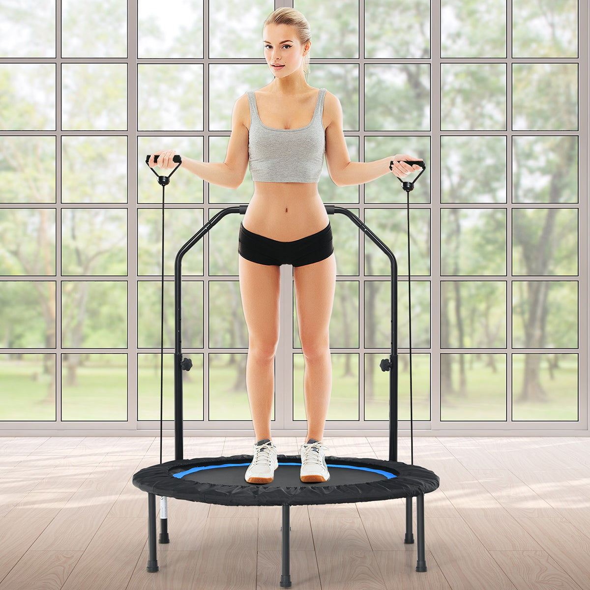 - Com 2 bandas de resistência: este trampolim fitness inclui 2 bandas de resistência removíveis para tornar o treino mais divertido. Este trampolim, com as bandas de resistência, não só é ideal para moldar o corpo, aumentar o equilíbrio e a força muscular, mas também é perfeito para yoga e alongamentos.