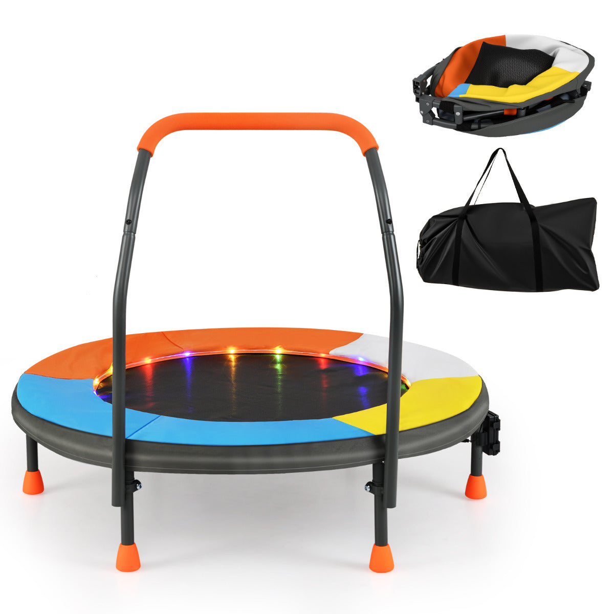 Mini Trampolim para Crianças de 90 cm com Luzes Rebatedor Pequeno Dobrável para Interior e Exterior com Barra de Espuma e Capa de Segurança