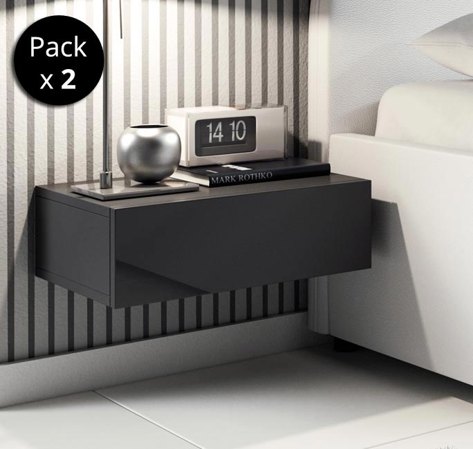 Conjunto de 2 mesinhas de cabeceira para pendurar, ideal para combinar com as camas disponíveis no nosso site. Dê um toque moderno ao seu quarto com este conjunto de 2 mesinhas de cabeceira de design original e simples.