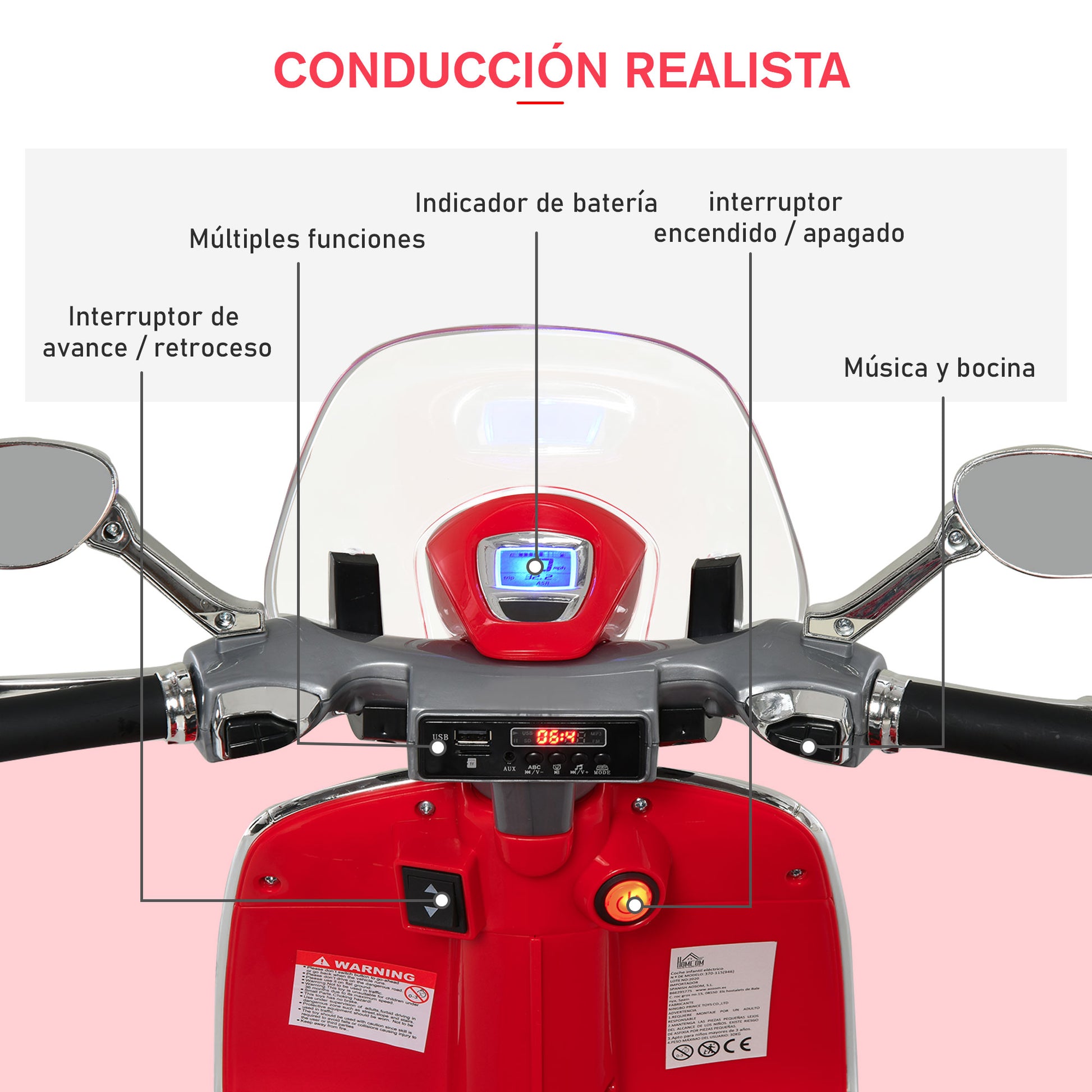 Mota Elétrica Infantil Vermelha 108x49x75 cm com Luzes e Sons - 2 Rodas Auxiliares para Crianças acima de 3 Anos