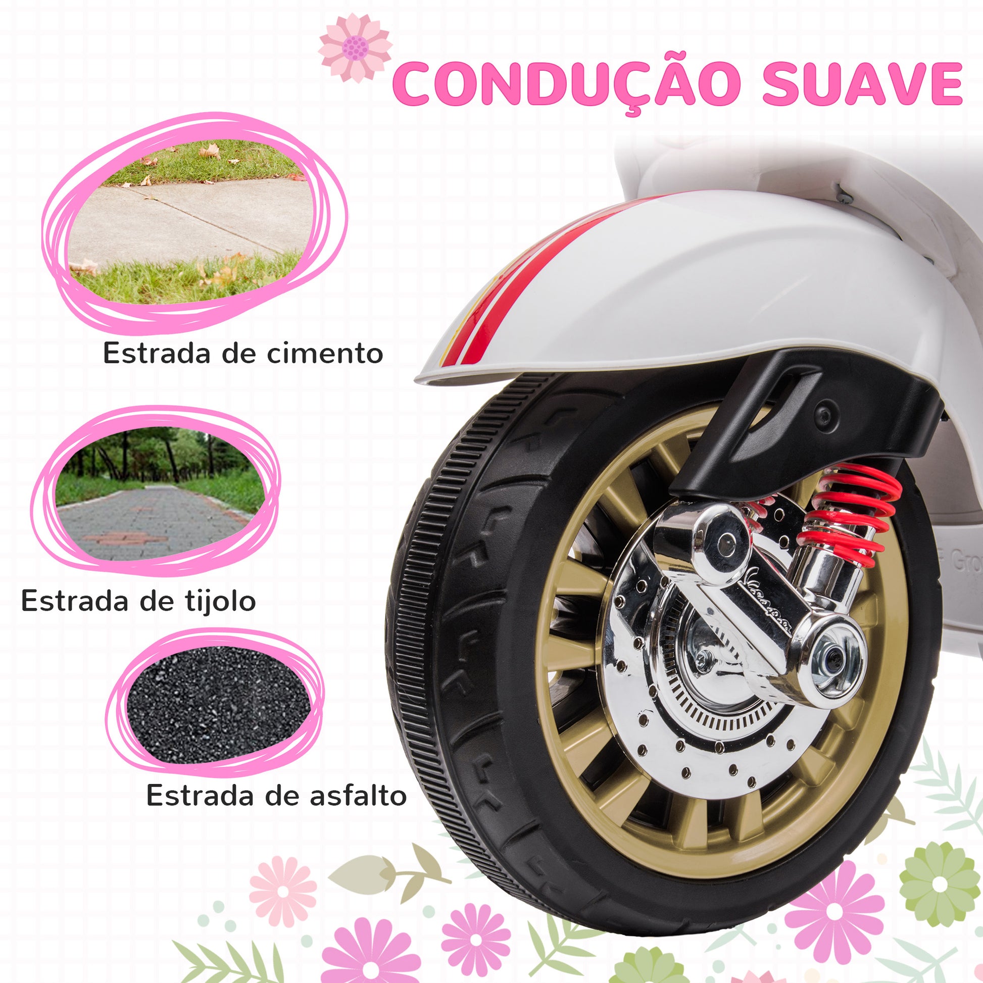 A Vespa de 6V licenciada oferece um design autêntico e seguro, com indicador de bateria restante para garantir que a diversão nunca acabe. Requer montagem e inclui manual de instruções para facilitar a experiência.