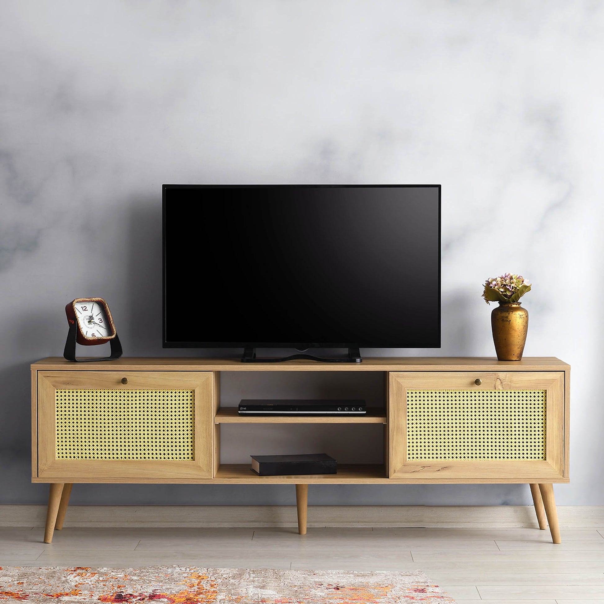 Móvel de TV rústico boêmio, cor carvalho, 180 x 60 x 40 cm | Painel de partículas 100% revestido em melamina, 18 mm de espessura | Montável na parede com várias prateleiras
