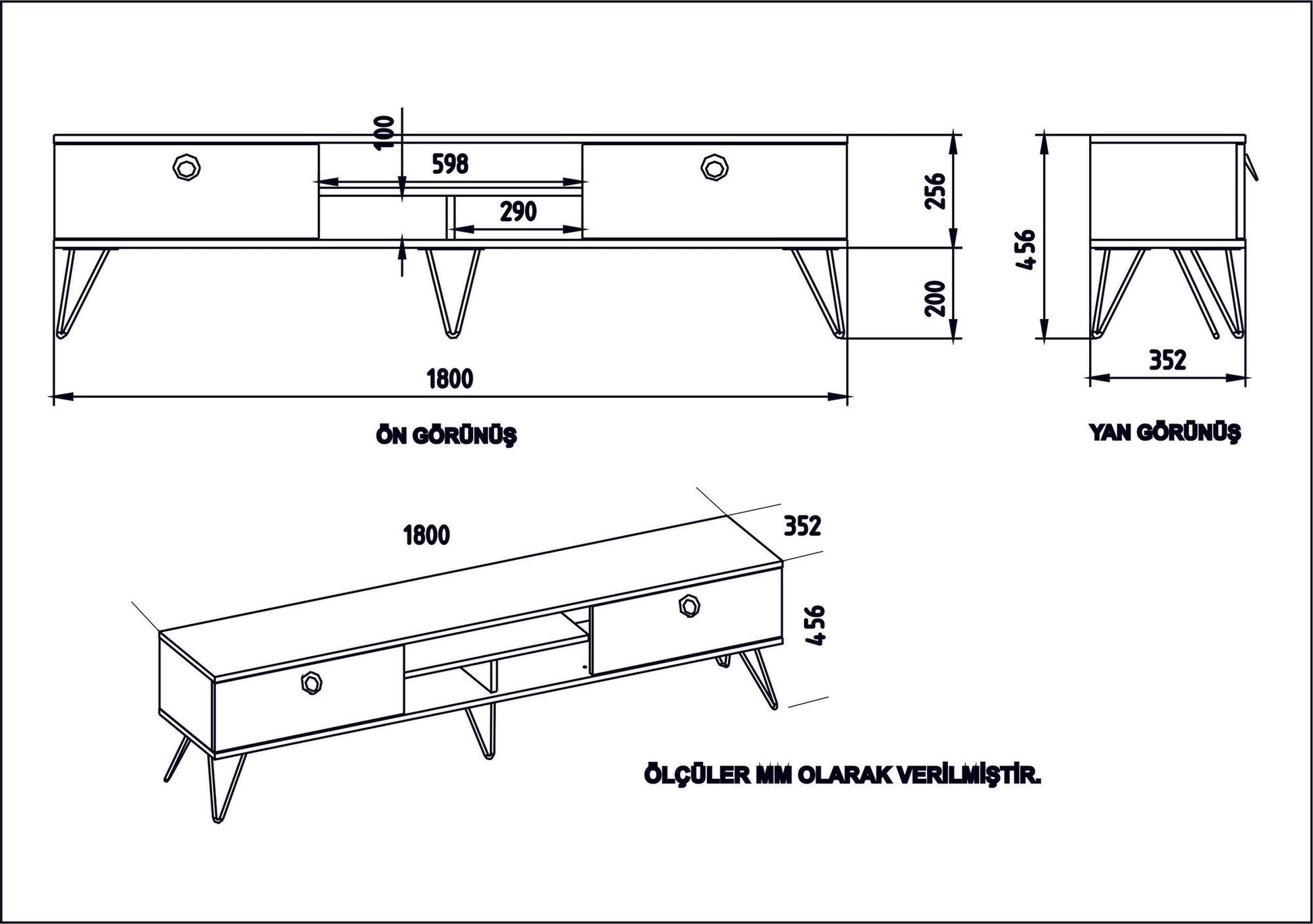 - Tamanho do suporte para TV: Largura: 180cm, Altura: 45. 6cm, profundidade: 35. 2cm