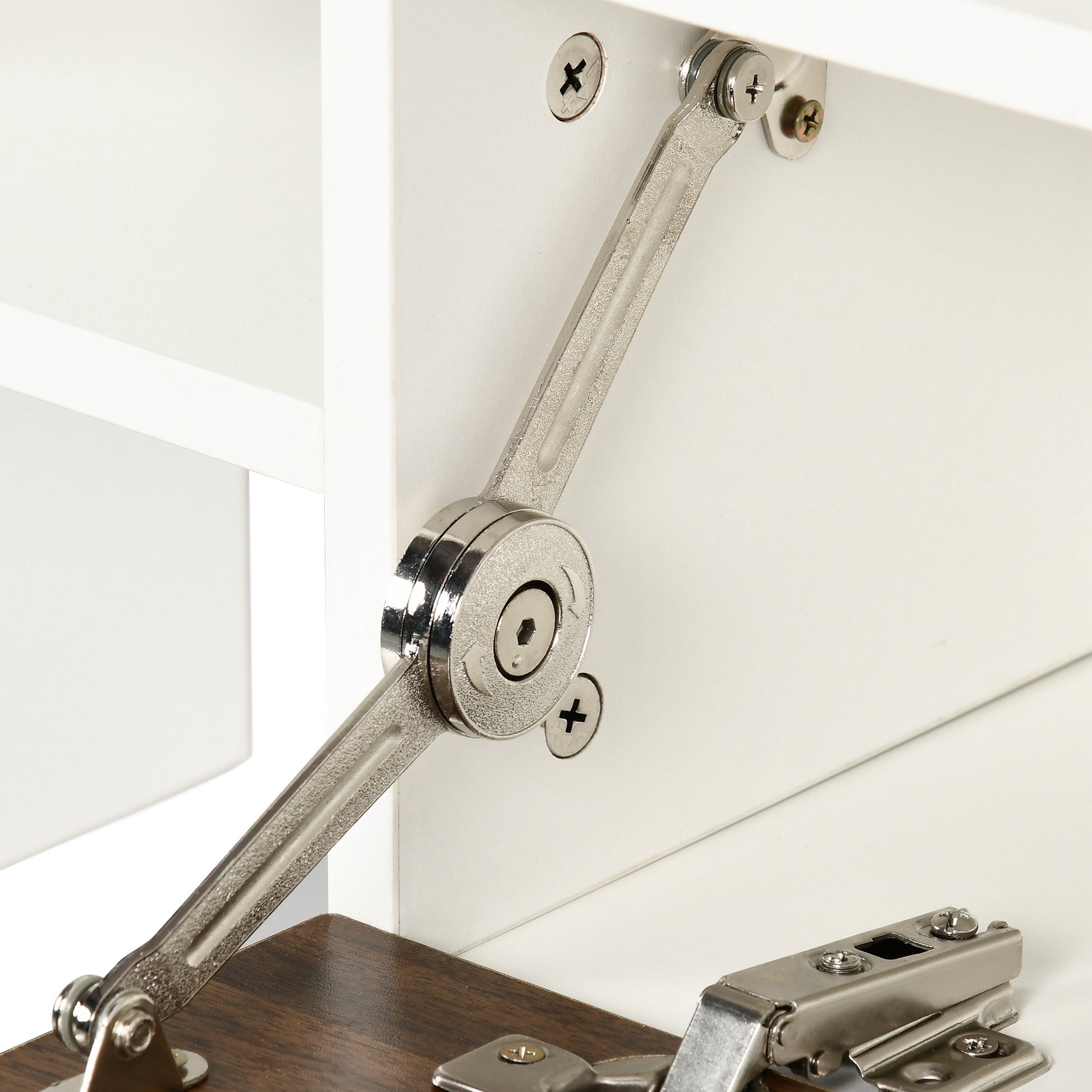 - Benefícios: Amplo espaço de armazenamento, incluindo uma ampla bancada, compartimentos abertos, e um armário com porta basculante