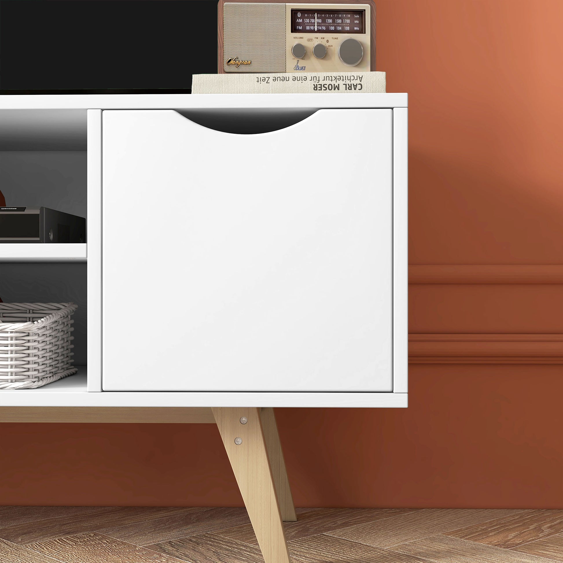 Móvel de TV Moderno Branco e Madeira 110x39x50 cm
